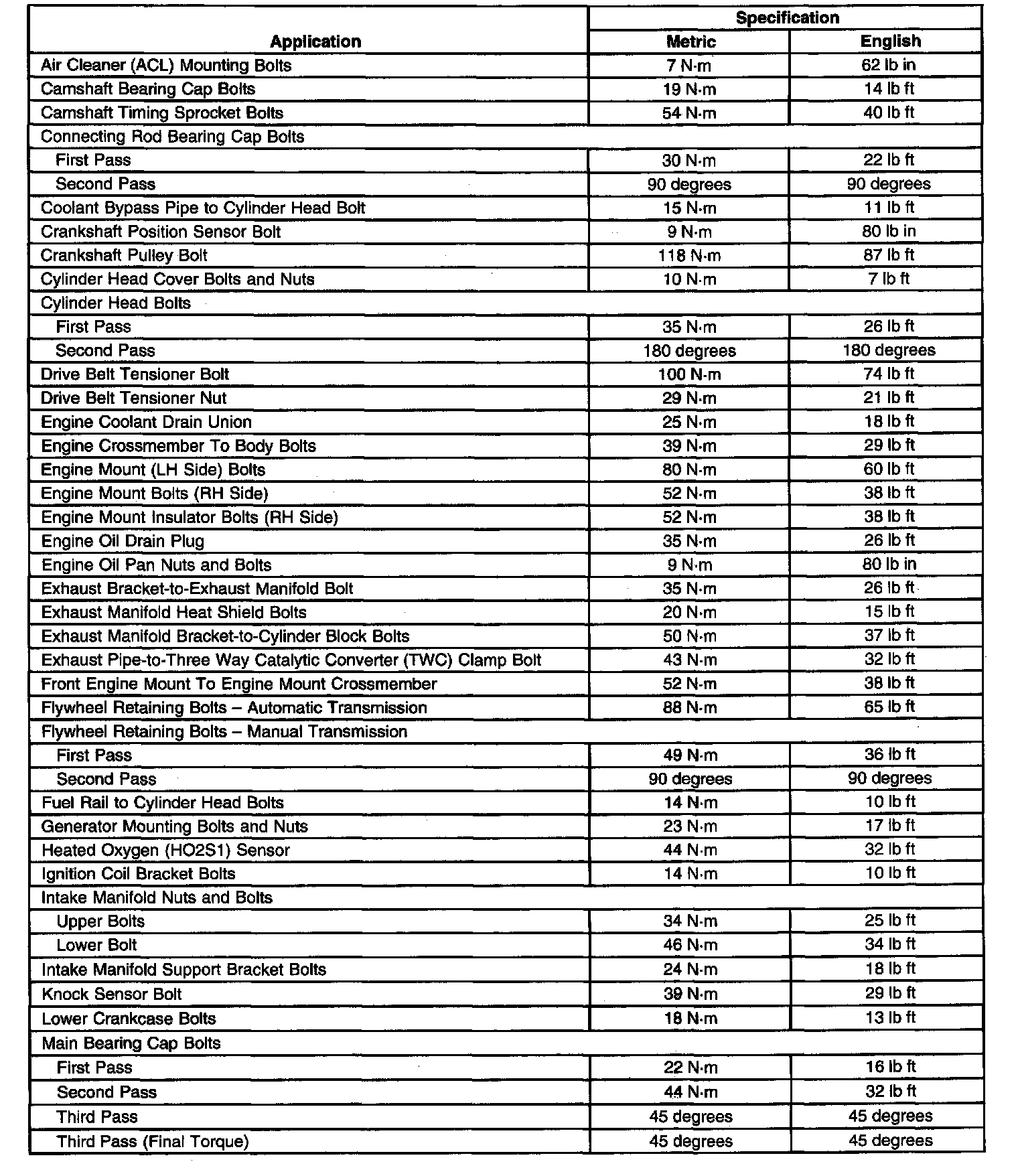 Torque Specifications