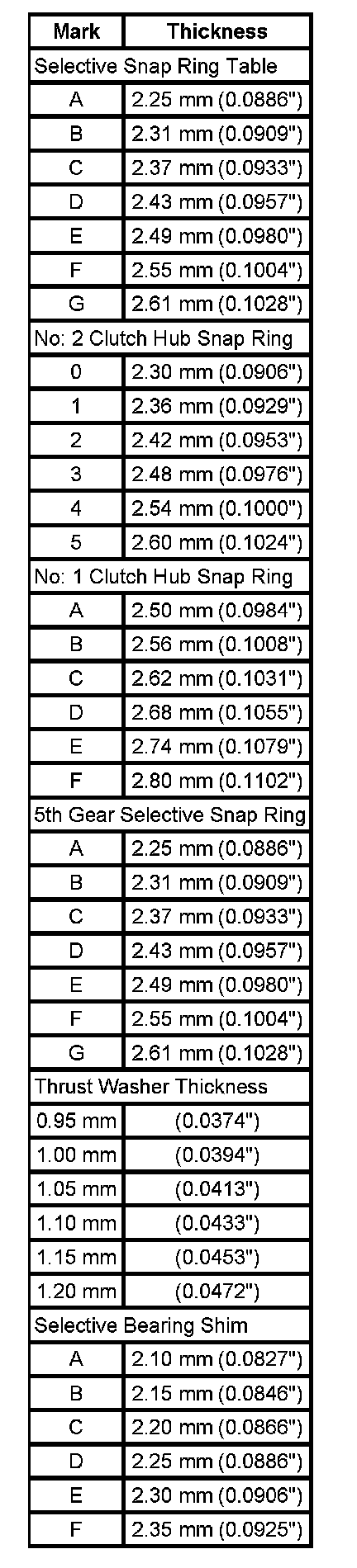 Transaxle Specifications