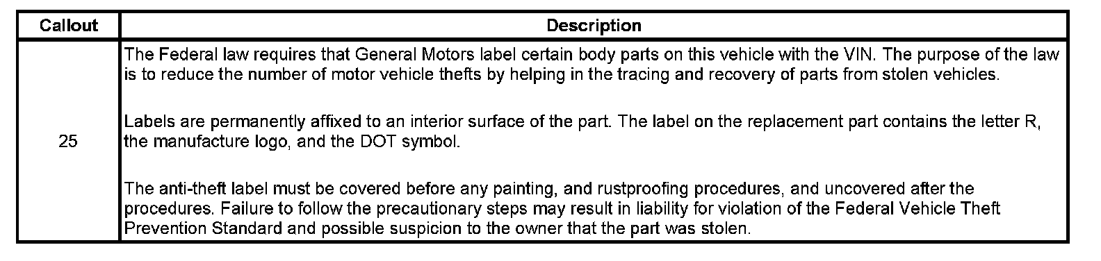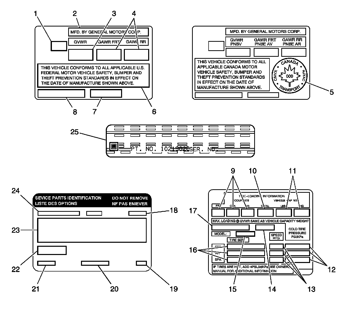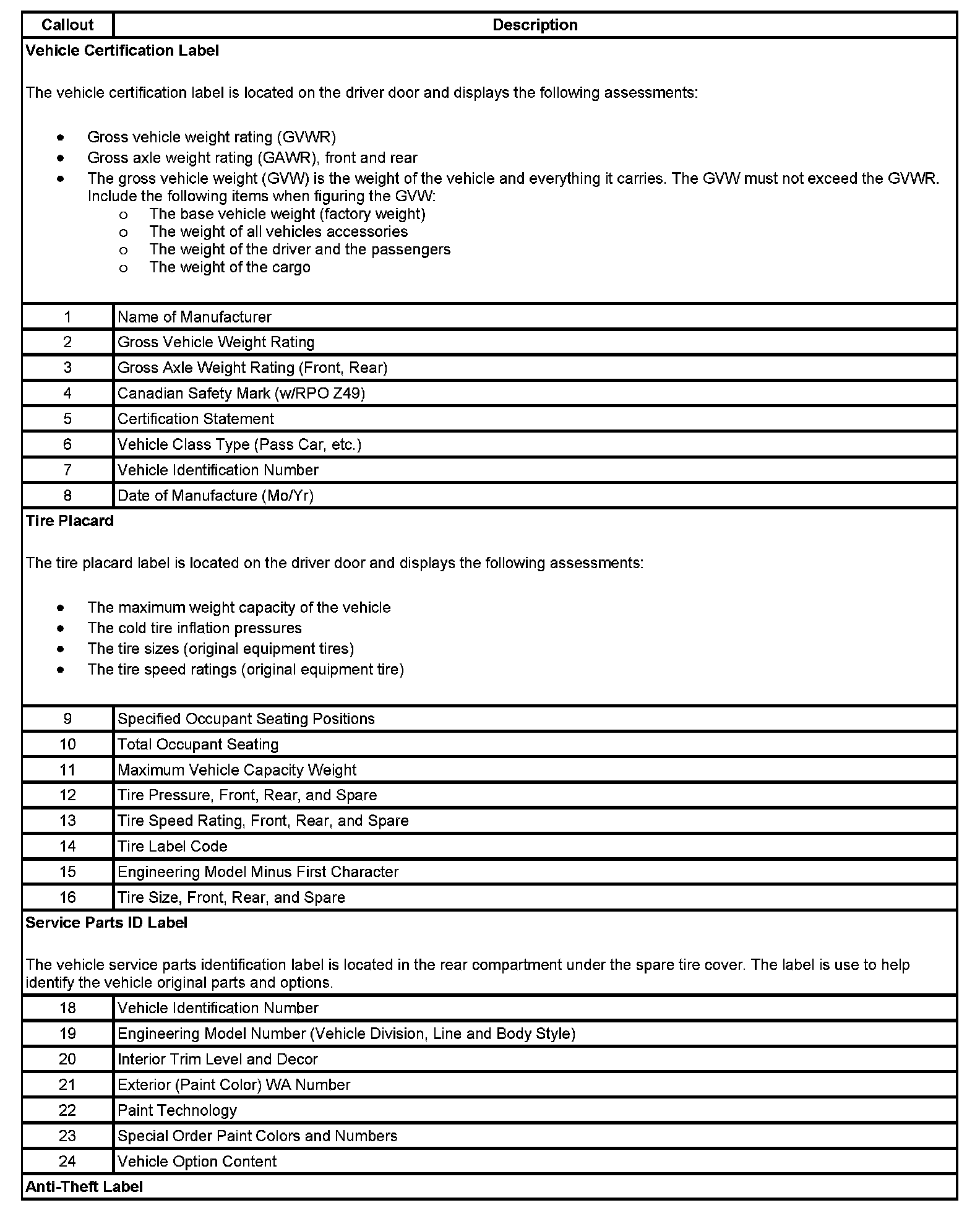 LABEL - VEHICLE CERTIFICATION, TIRE PLACE CARD, ANTI-THEFT AND SERVICE PARTS ID