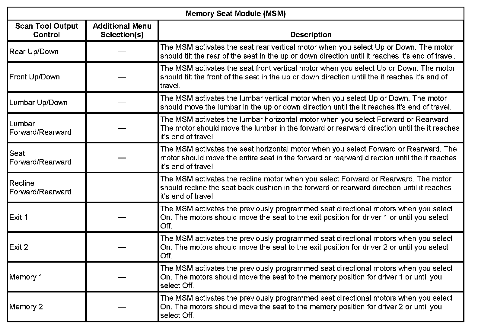 Memory Seat Module (MSM):