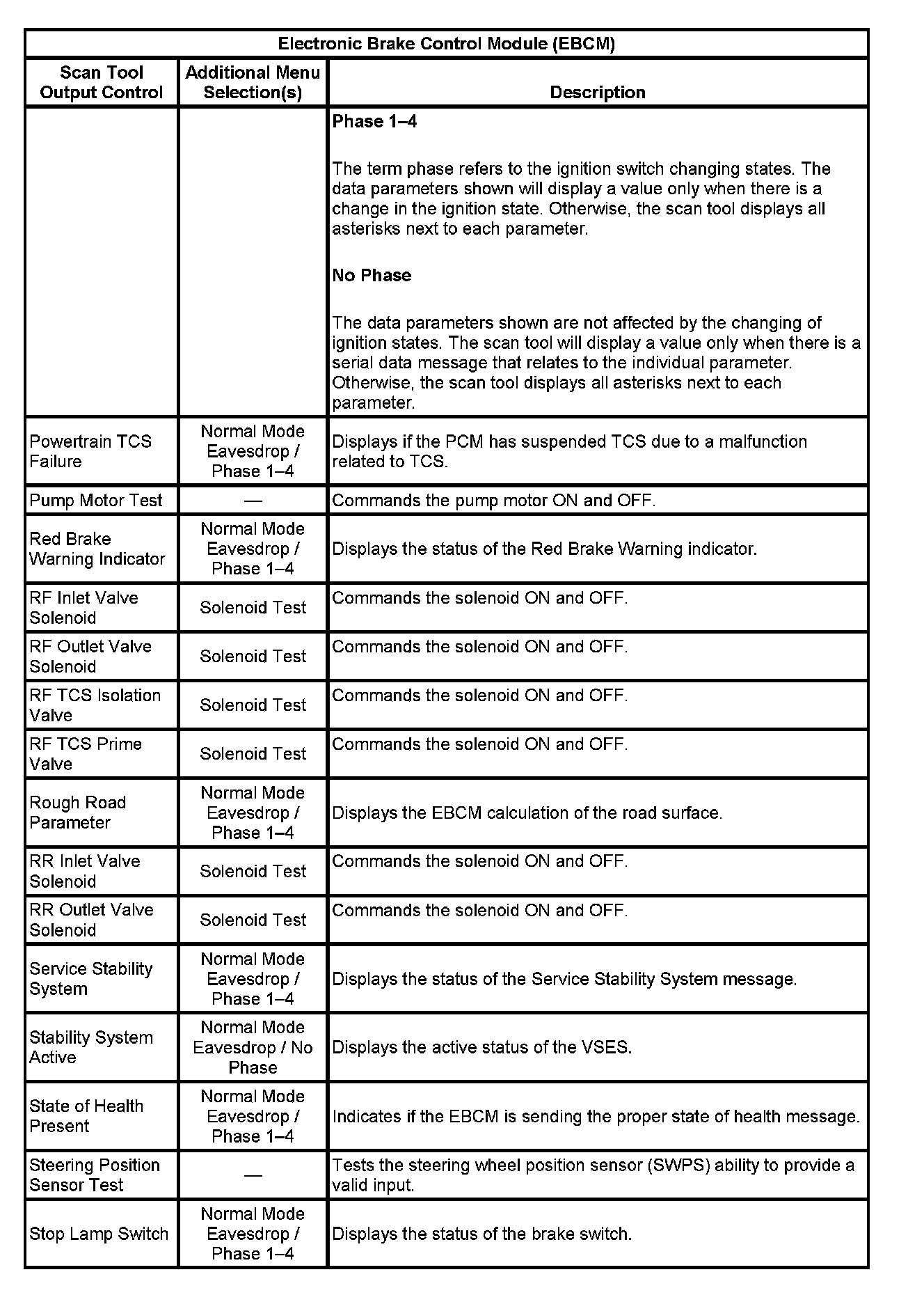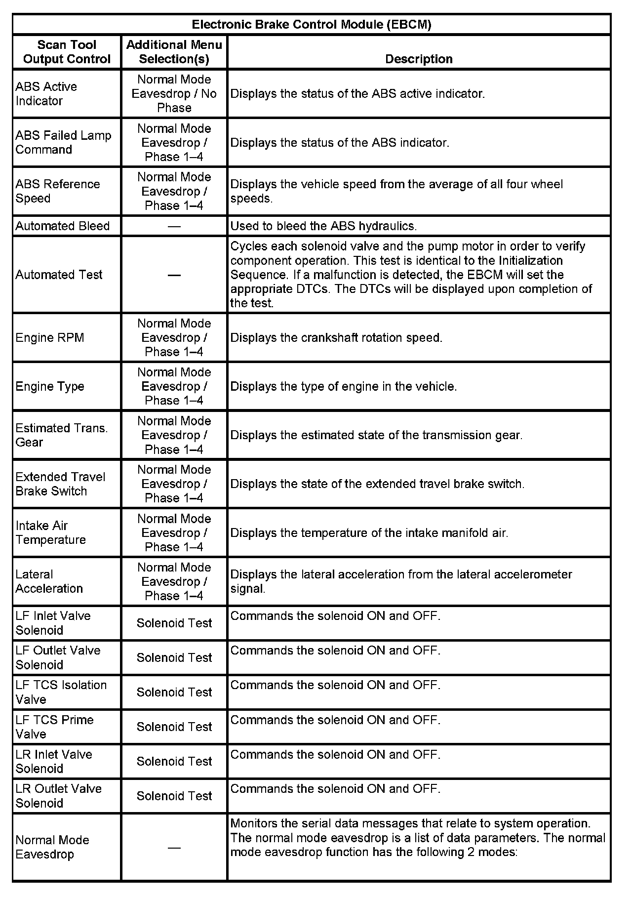 Scan Tool Output Controls: