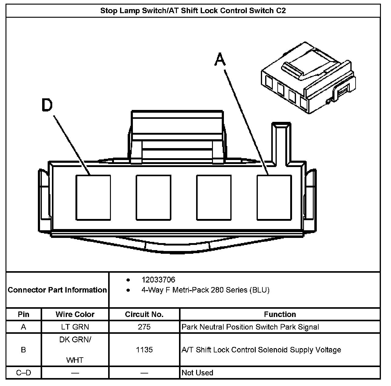 Stop Lamp Switch/AT Shift Lock Control Switch C2: