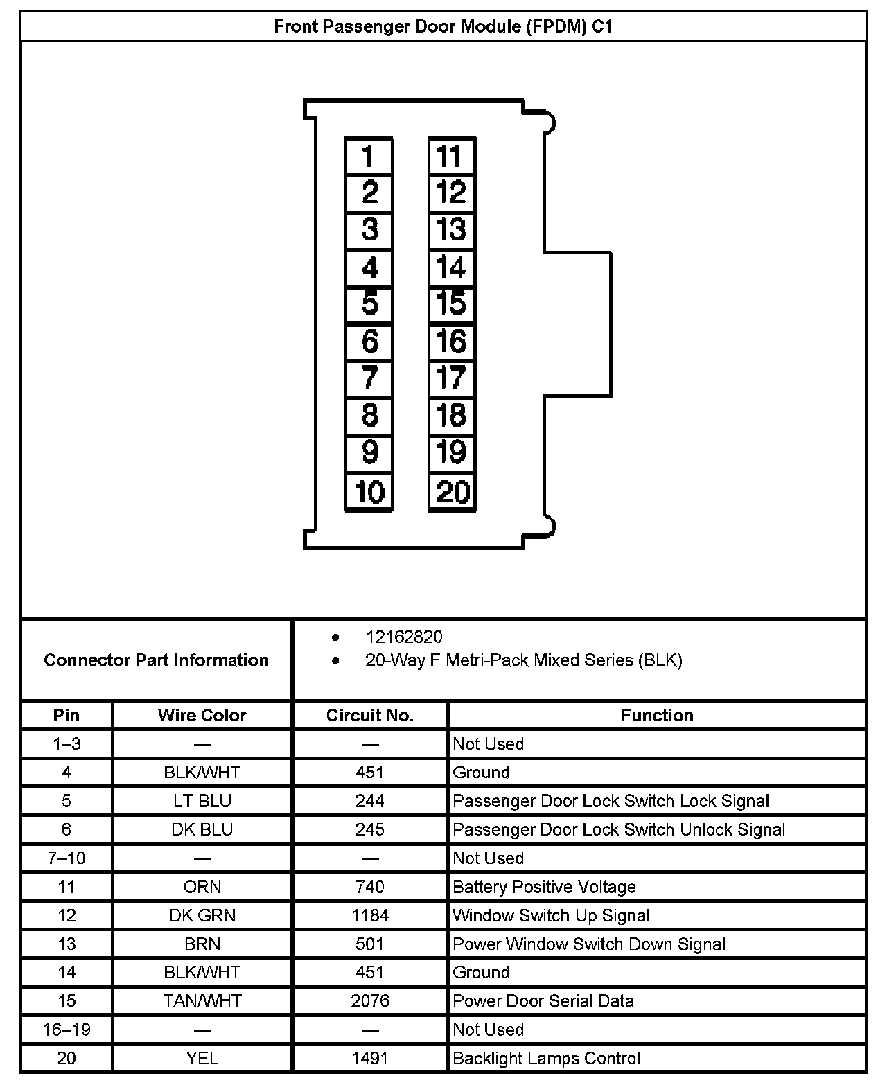 Front Passenger Door Module (FPDM) C1: