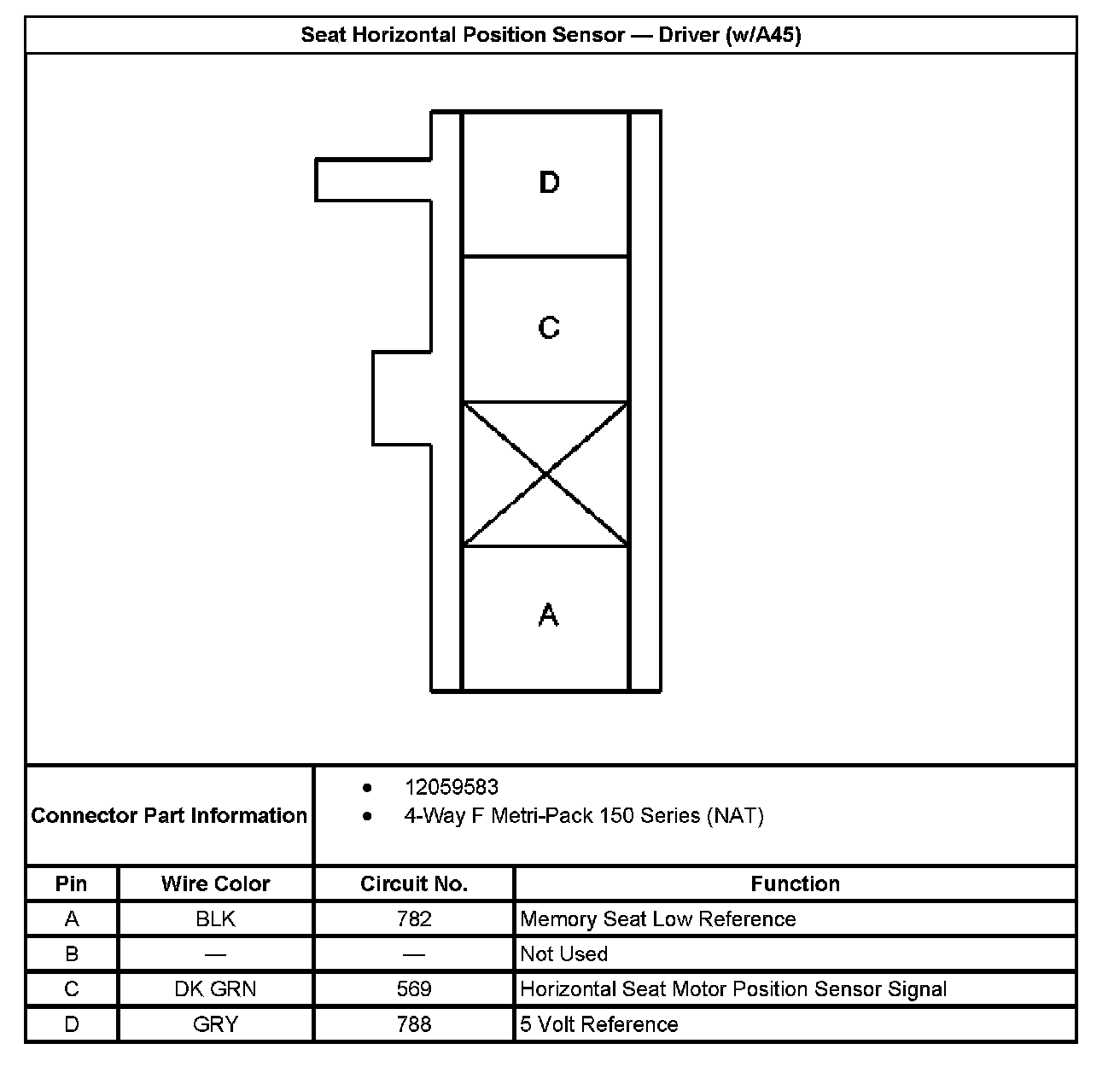 Seat Horizontal Position Sensor - Driver (With RPO Code A45):