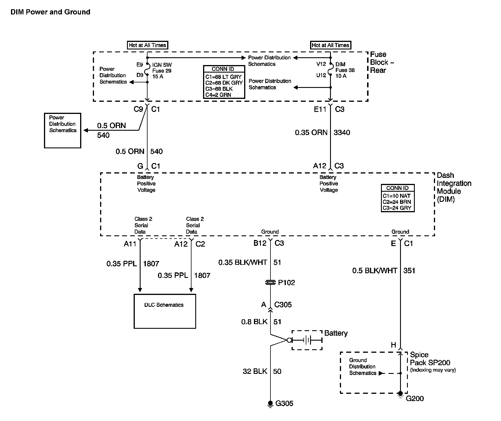 Location: The locations for the Connectors, Grounds, Splices, and Grommets shown within these diagrams can be found via their numbers at Vehicle Locations. Locations