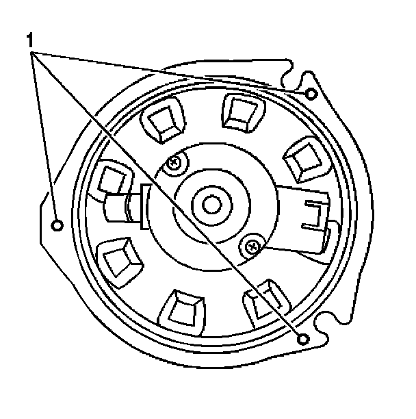 4. Remove the blower motor screws (1).