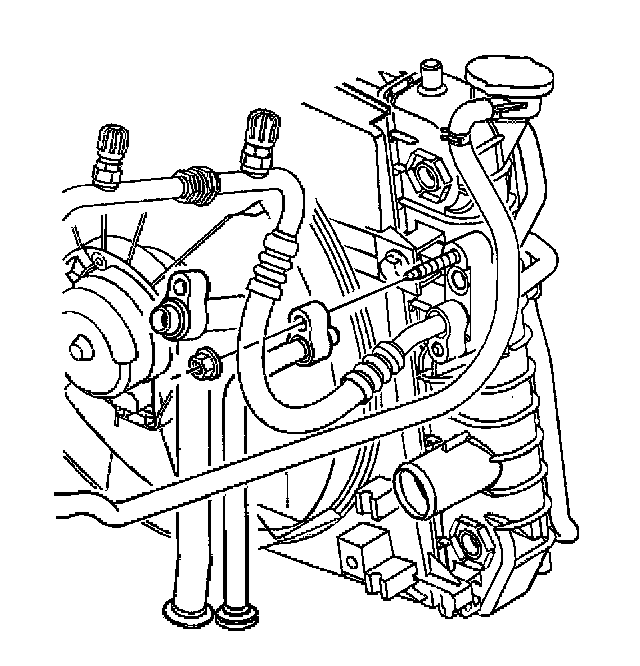 7. Remove the evaporator hose to condenser nut.