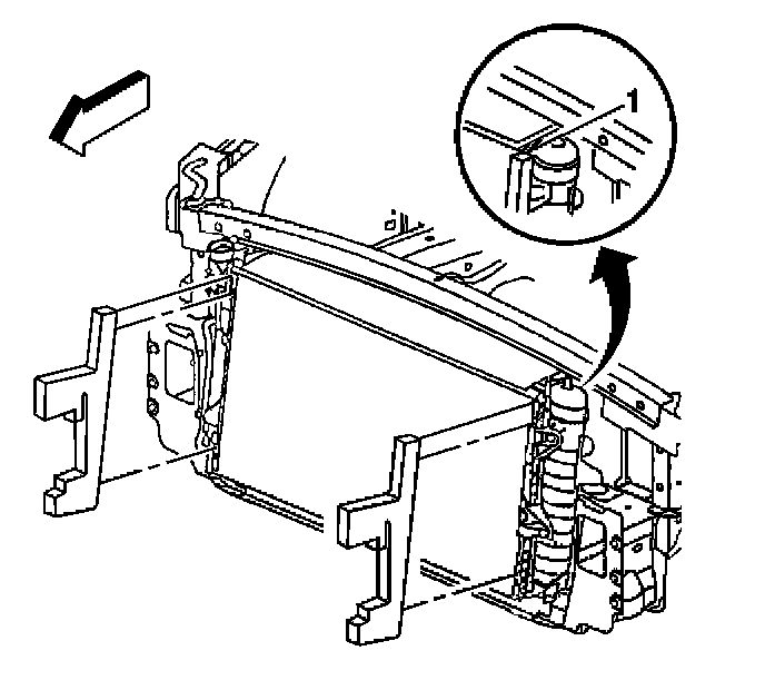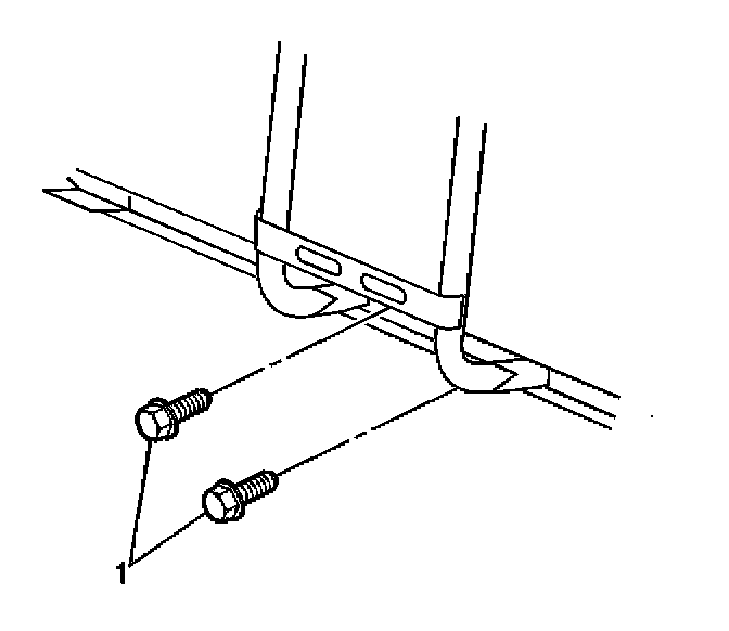 10. Remove the lower hood latch support bolts (1).