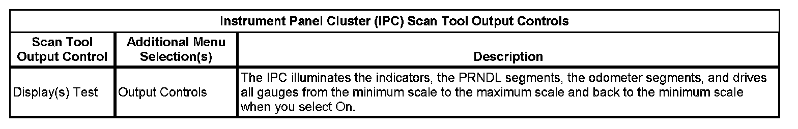 Instrument Panel Cluster (IPC) Scan Tool Output Controls: