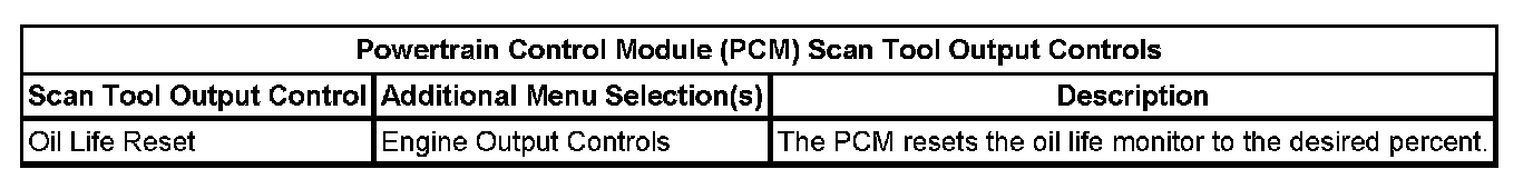 Powertrain Control Module (PCM) Scan Tool Output Controls:
