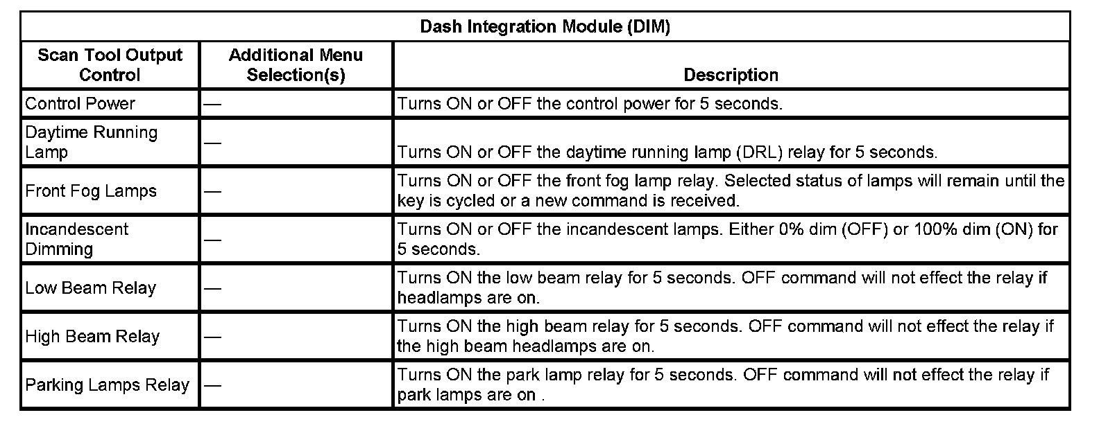 Scan Tool Output Controls - Dash Integration Module (DIM)