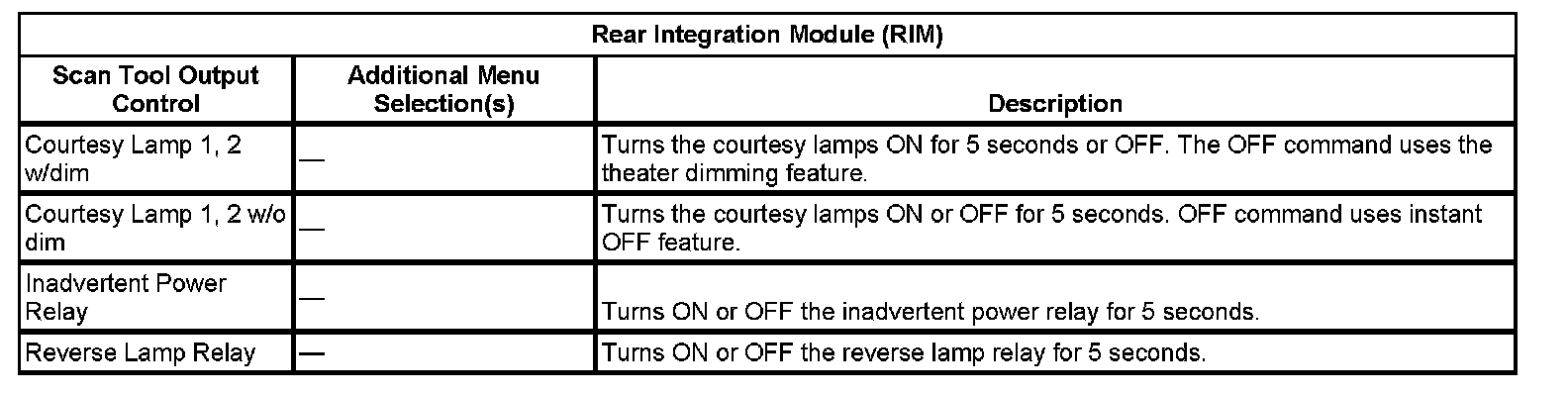 Scan Tool Output Controls - Rear Integration Module (RIM)