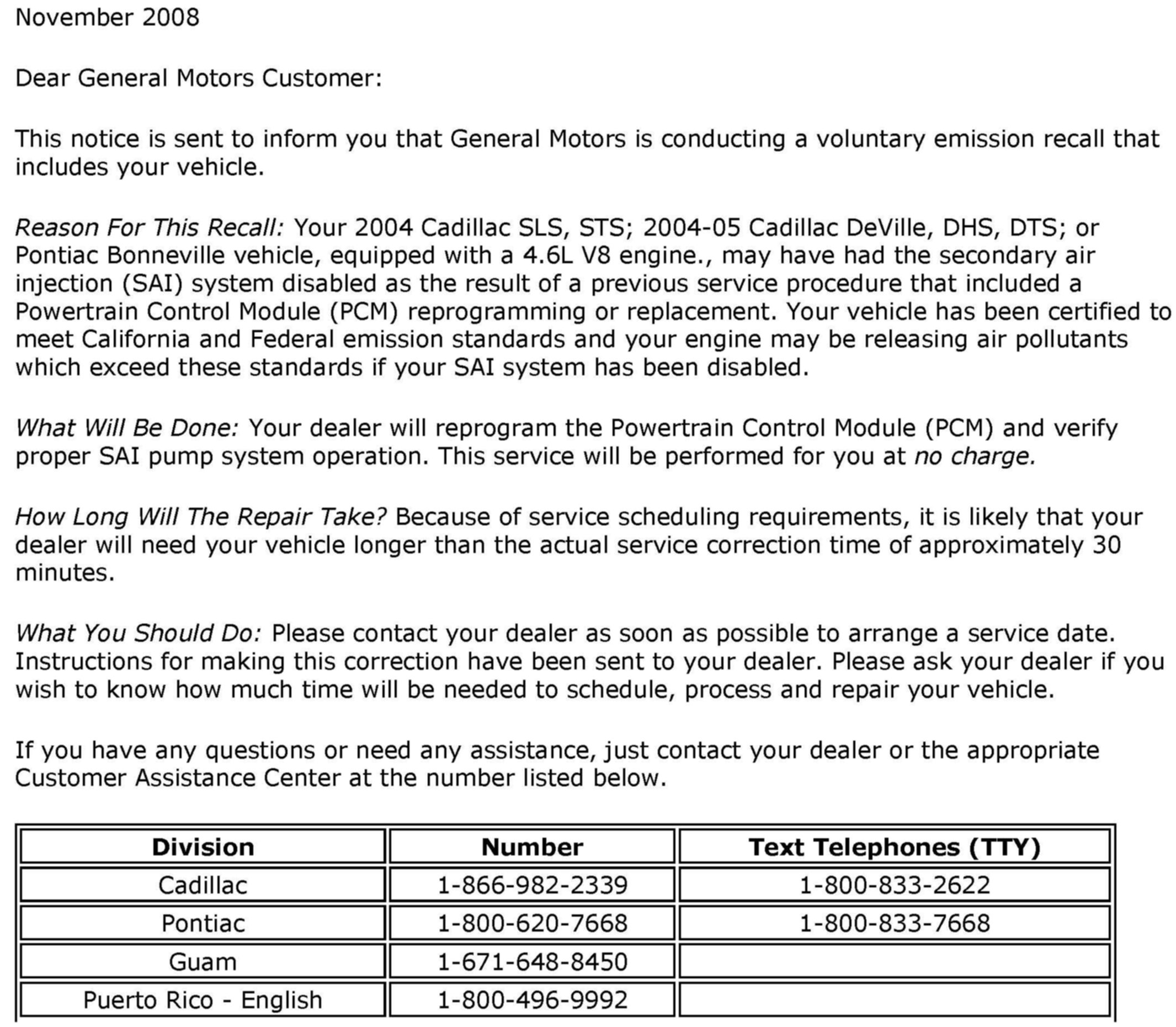 Recall - PCM Update For Air Injection Function
