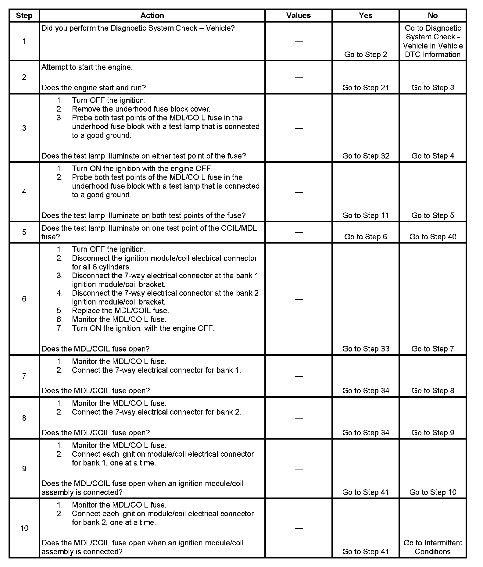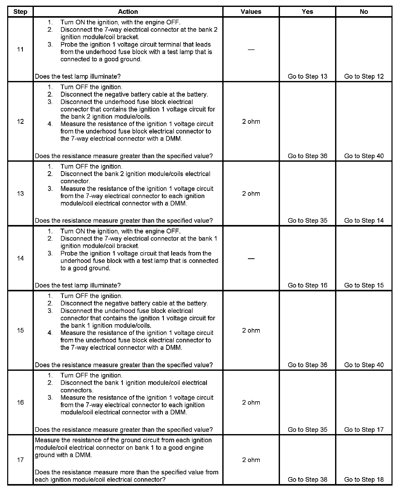 - This electronic ignition (EI) system diagnostic table assumes that the vehicle battery is fully charged. Refer to Battery Inspection/Test in Starting and Charging. Battery Inspection/Test