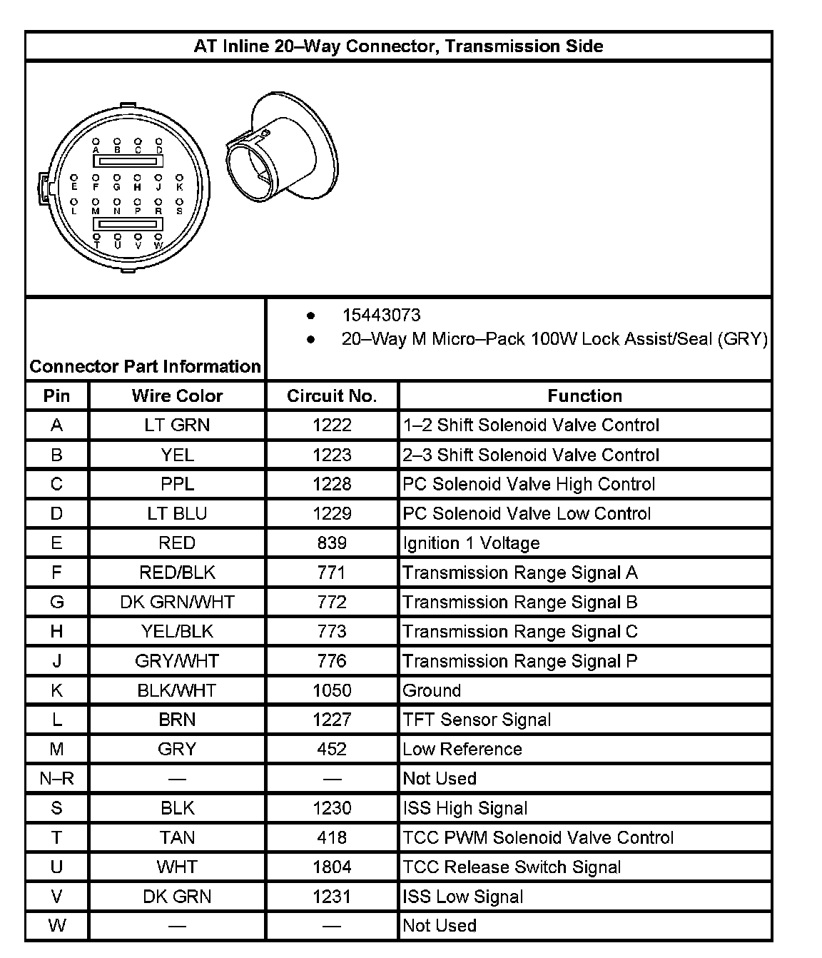 AT Inline 20-Way Connector, Transmission Side: