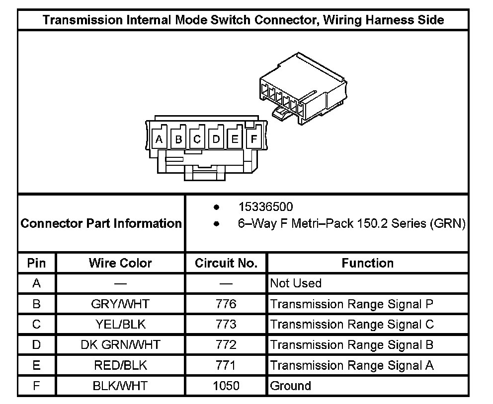 Transmission Internal Mode Switch Connector, Wiring Harness Side: