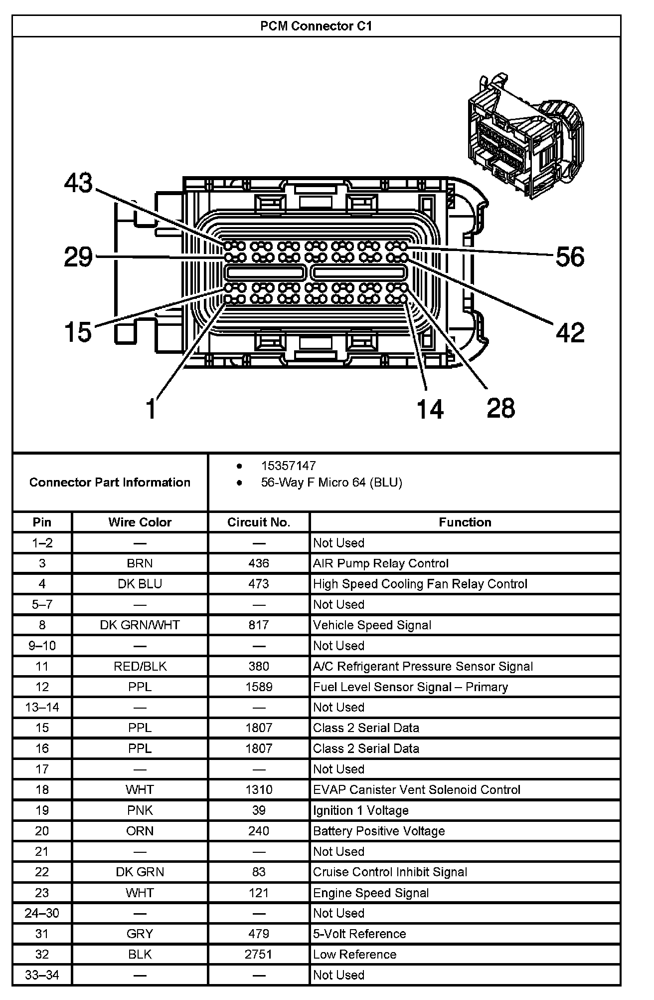 PCM Connector C1 Part 1: