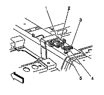 4. Remove the connector position assurance (CPA) (1) from the inflatable restraint sensing and diagnostic module (SDM) wiring harness connector (2).
