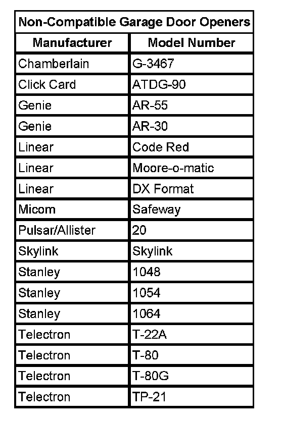 IMPORTANT: Do not use the garage door opener (GDO) with any garage door opener that does not have the stop and reverse safety feature. This includes any garage door opener model manufactured before April 1, 1982.