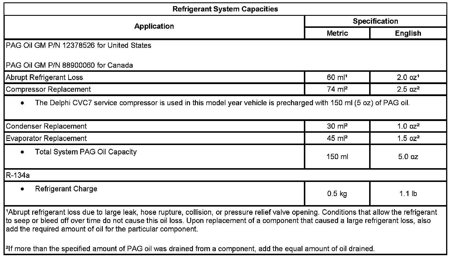 - Use only Polyalkylene Glycol Synthetic Refrigerant Oil (PAG) for internal circulation through the R-134a A/C system and only 525 viscosity mineral oil on fitting threads and O-rings. If lubricants other than those specified are used, compressor failure and/or fitting seizure may result.