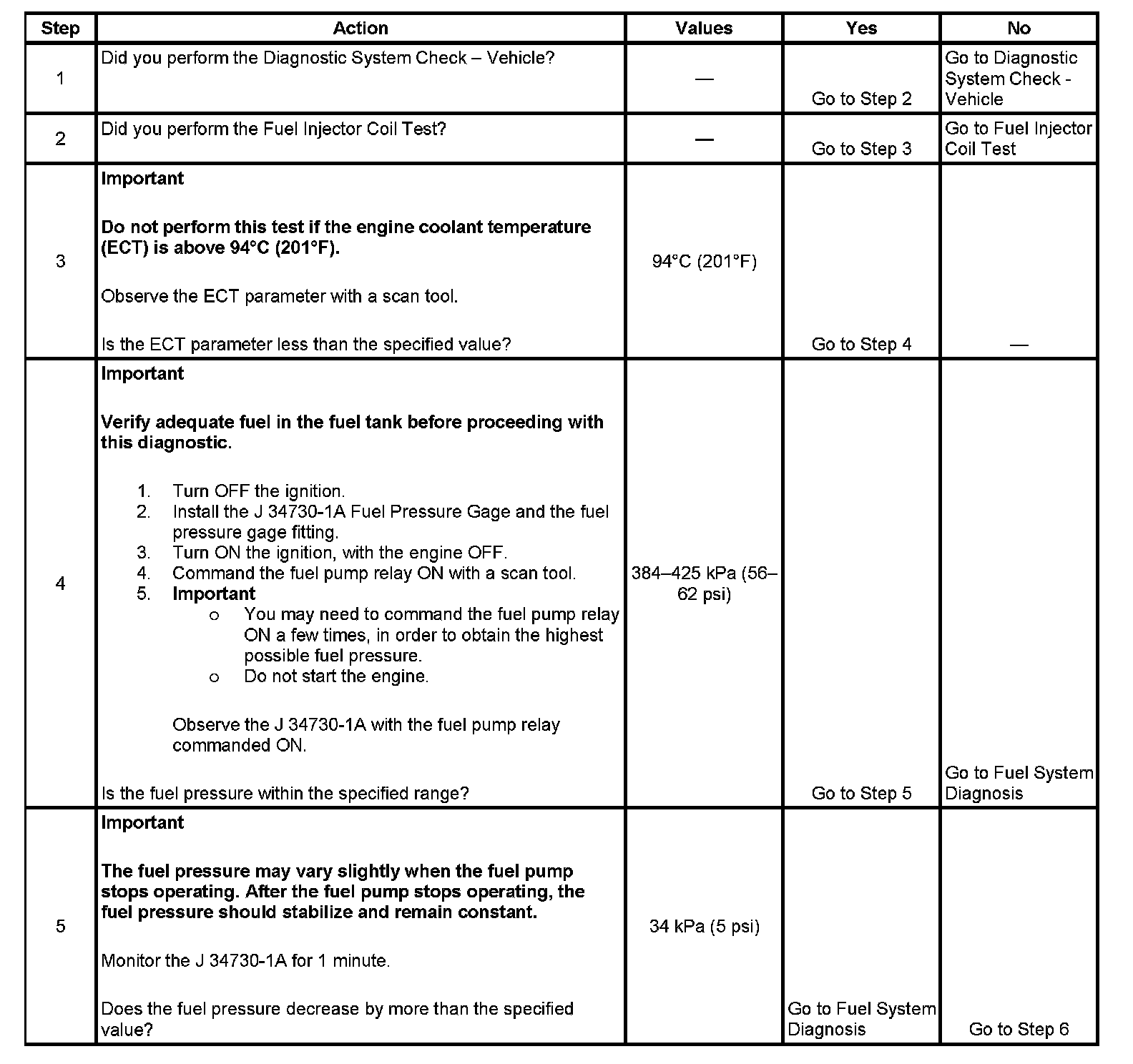 3. The engine coolant temperature (ECT) must be below the operating temperature in order to avoid irregular fuel pressure readings due to hot soak fuel boiling.