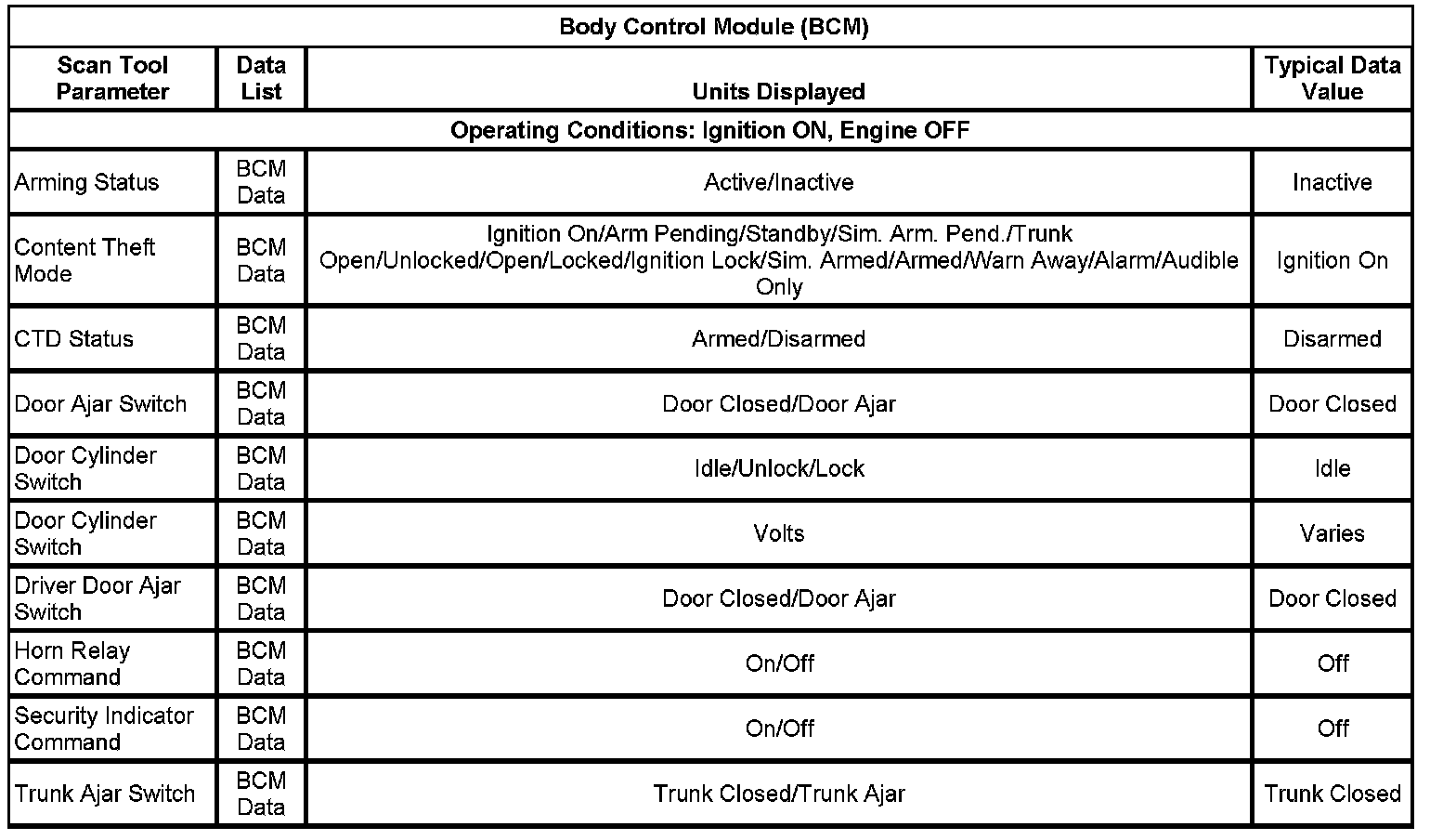 Scan Tool Data List - Antitheft System