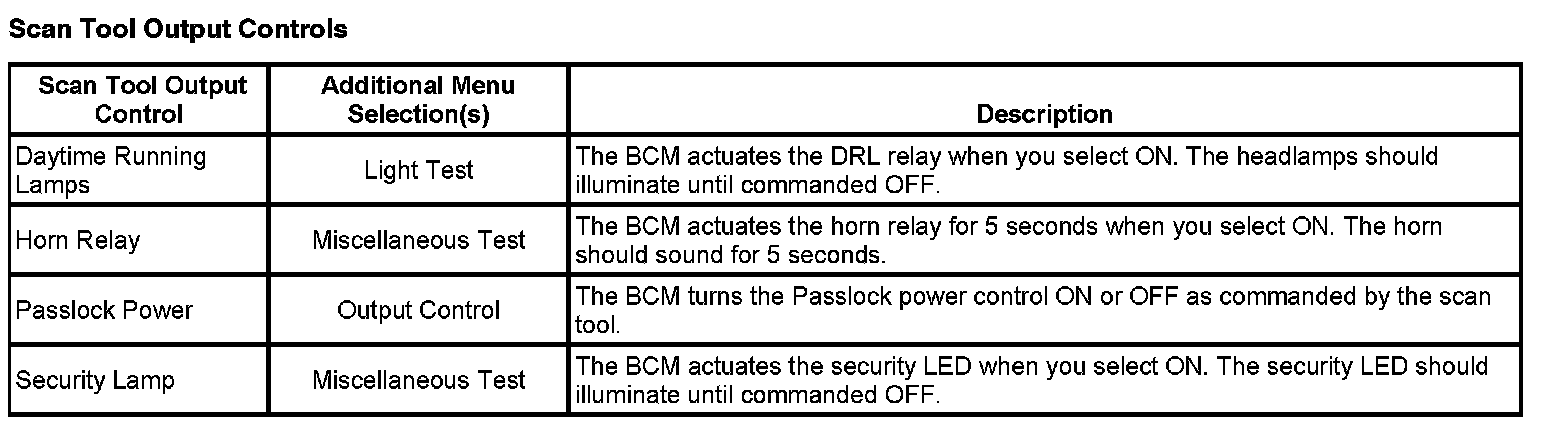 Scan Tool Output Controls:
