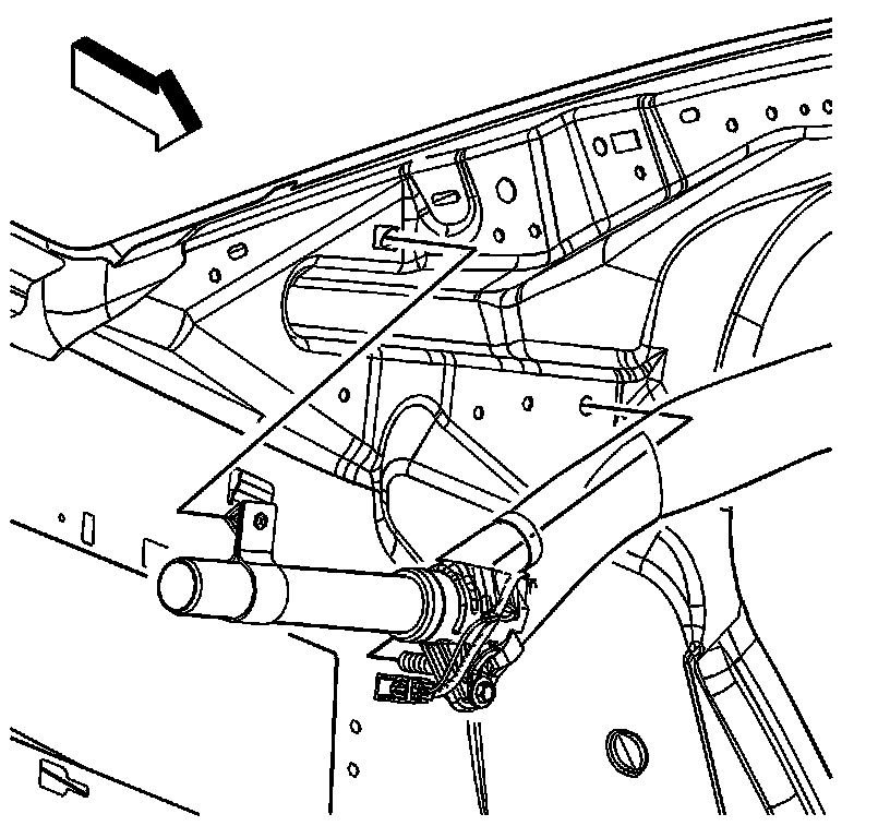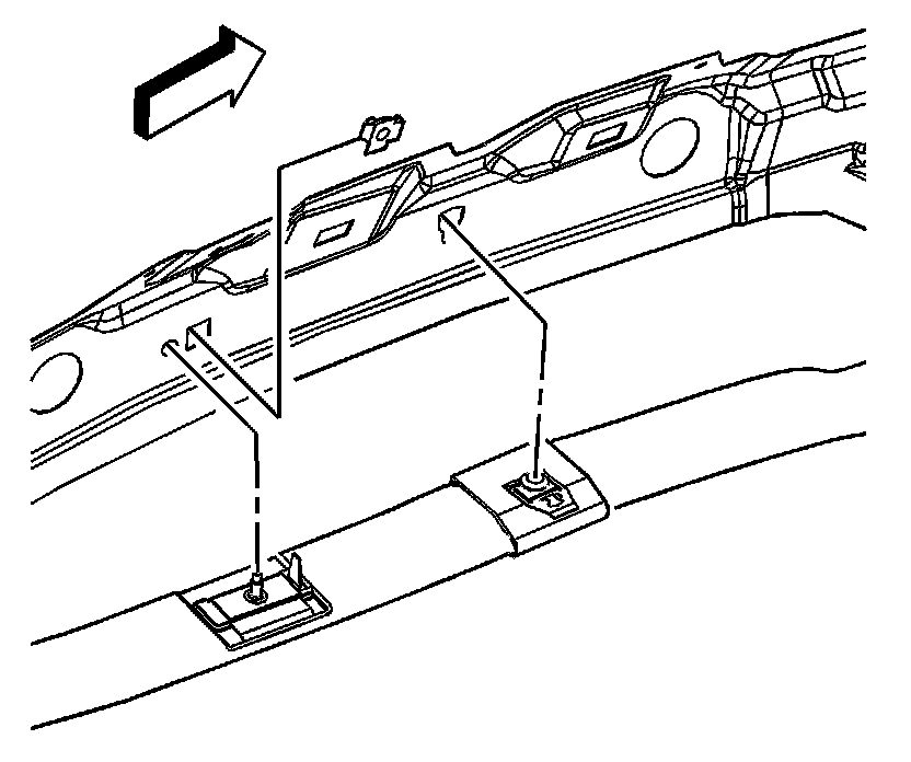 2. Working from the rear of the vehicle, install the retaining tabs to the structure to hold the inflator module in place.