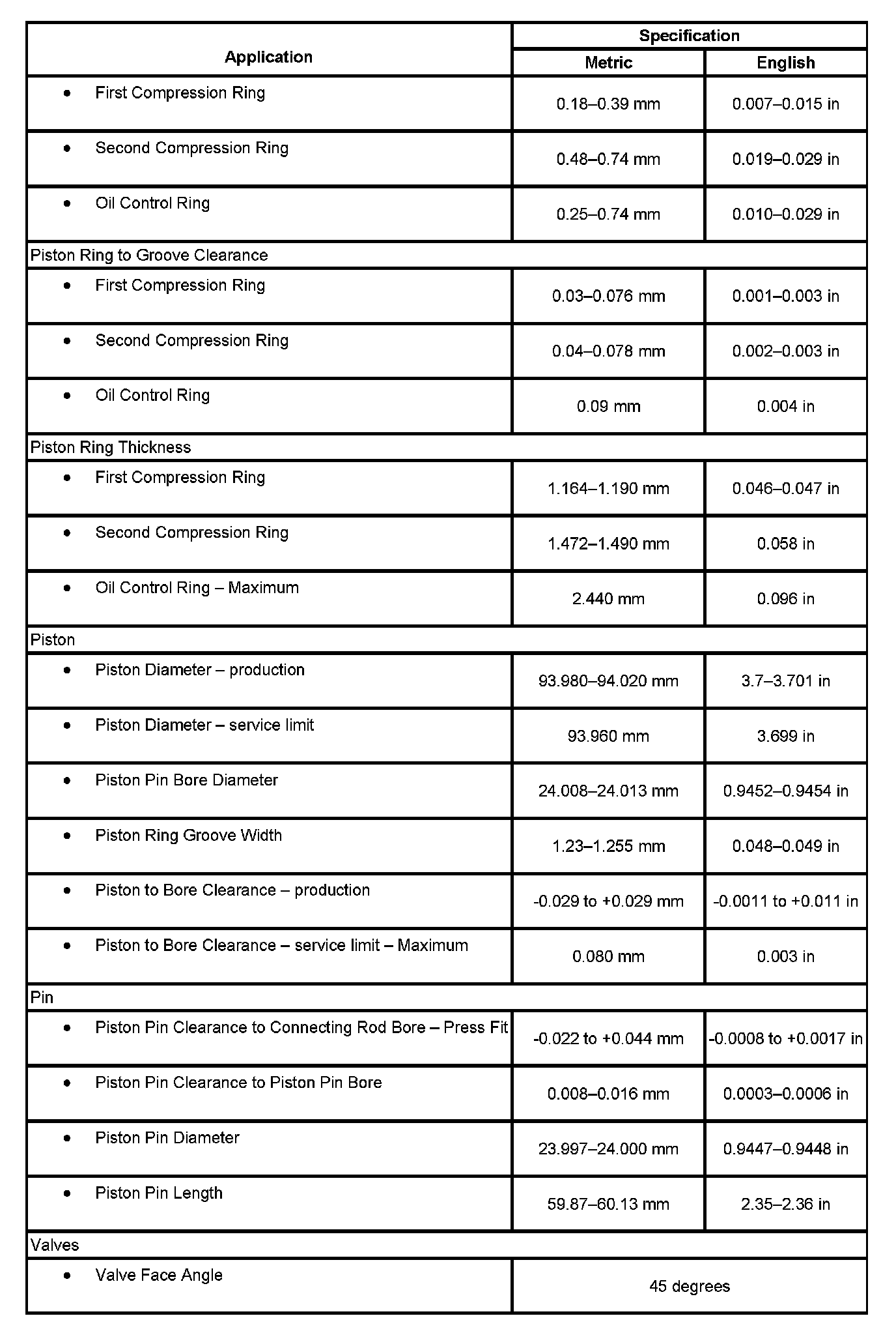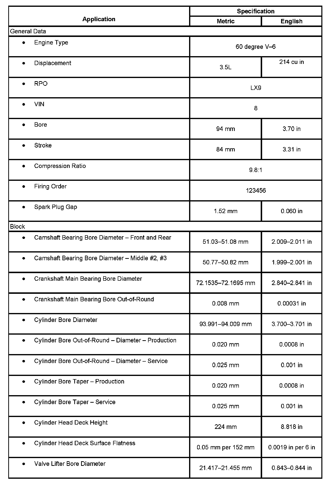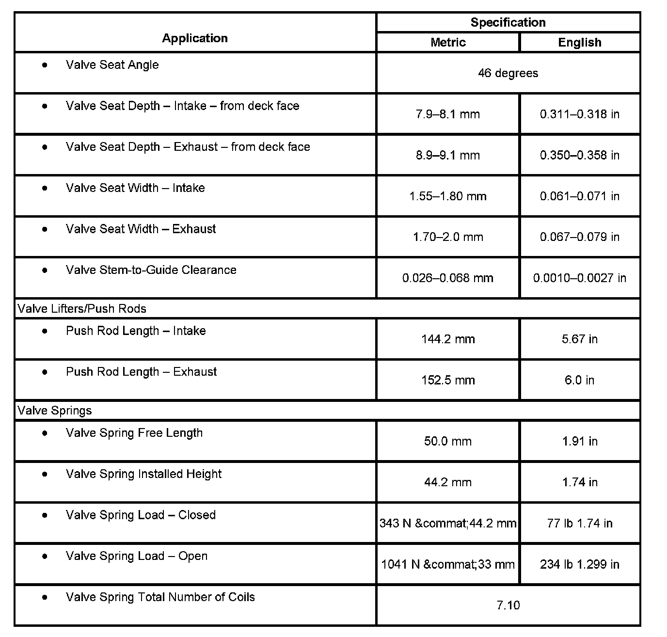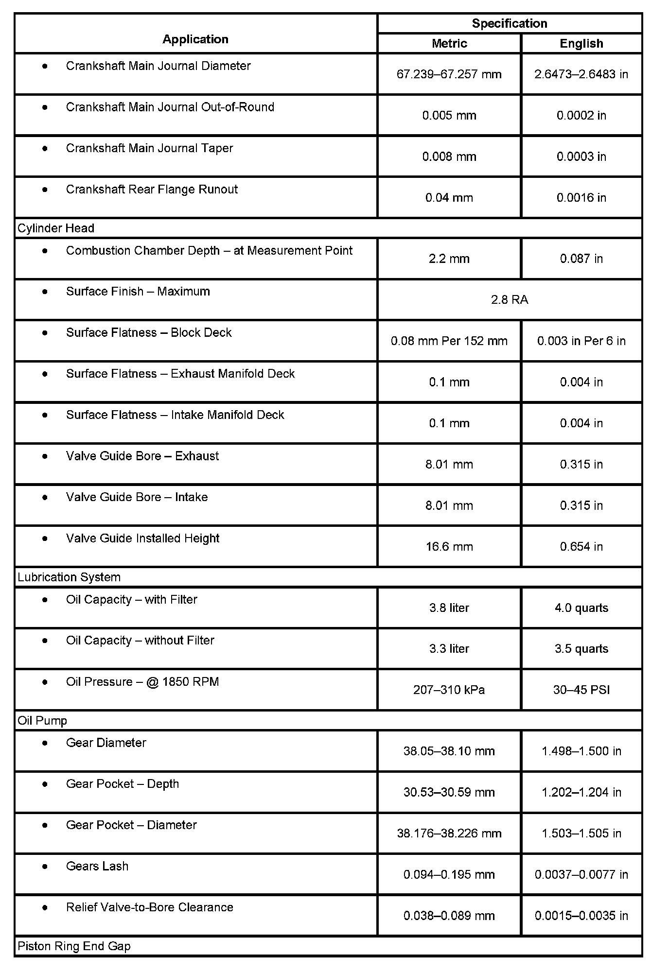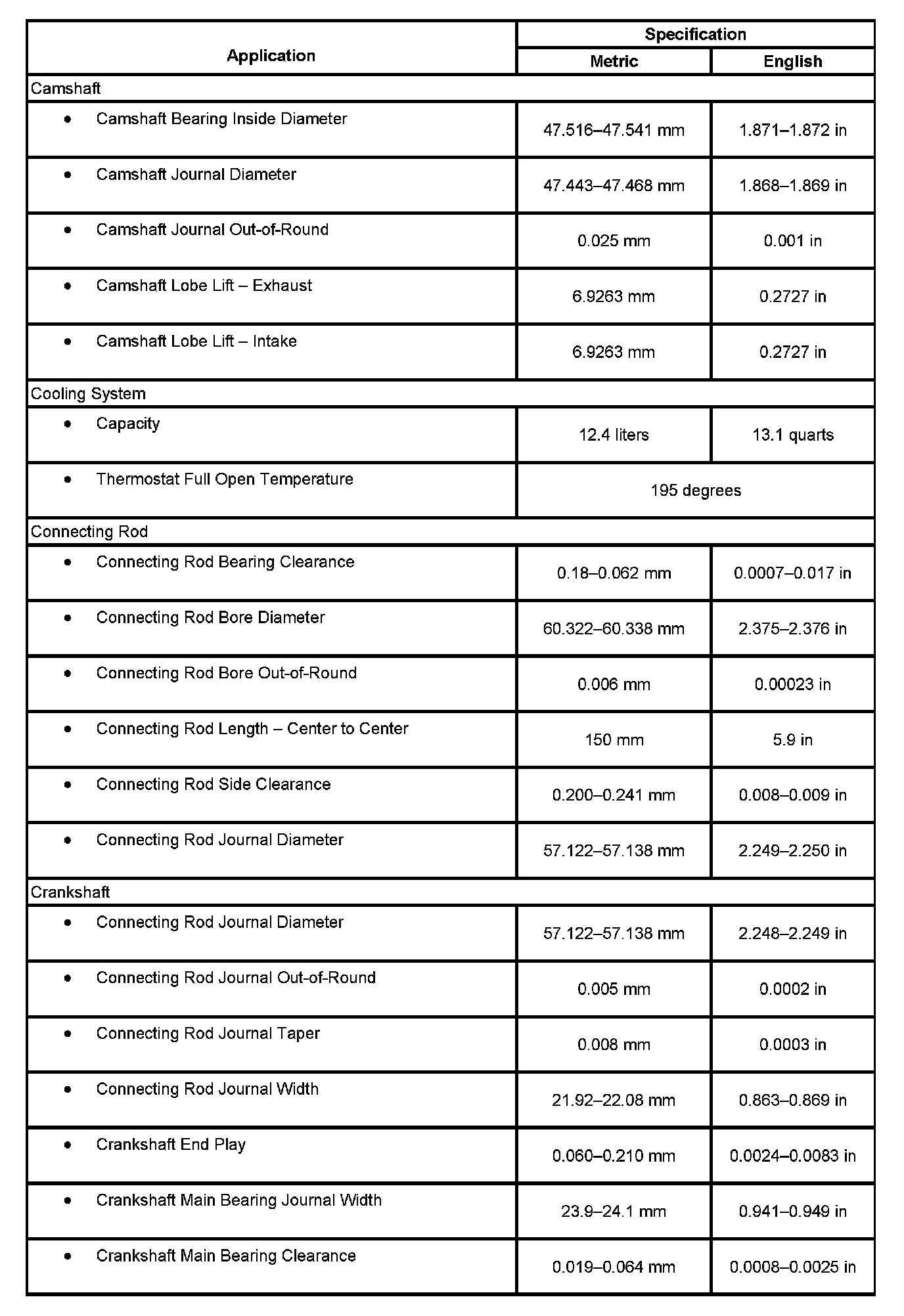 Engine Mechanical Specifications