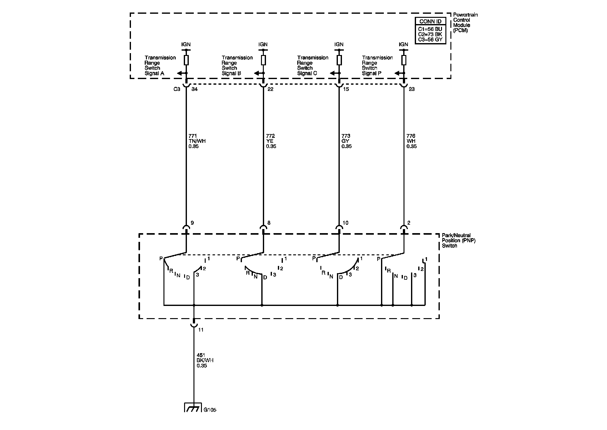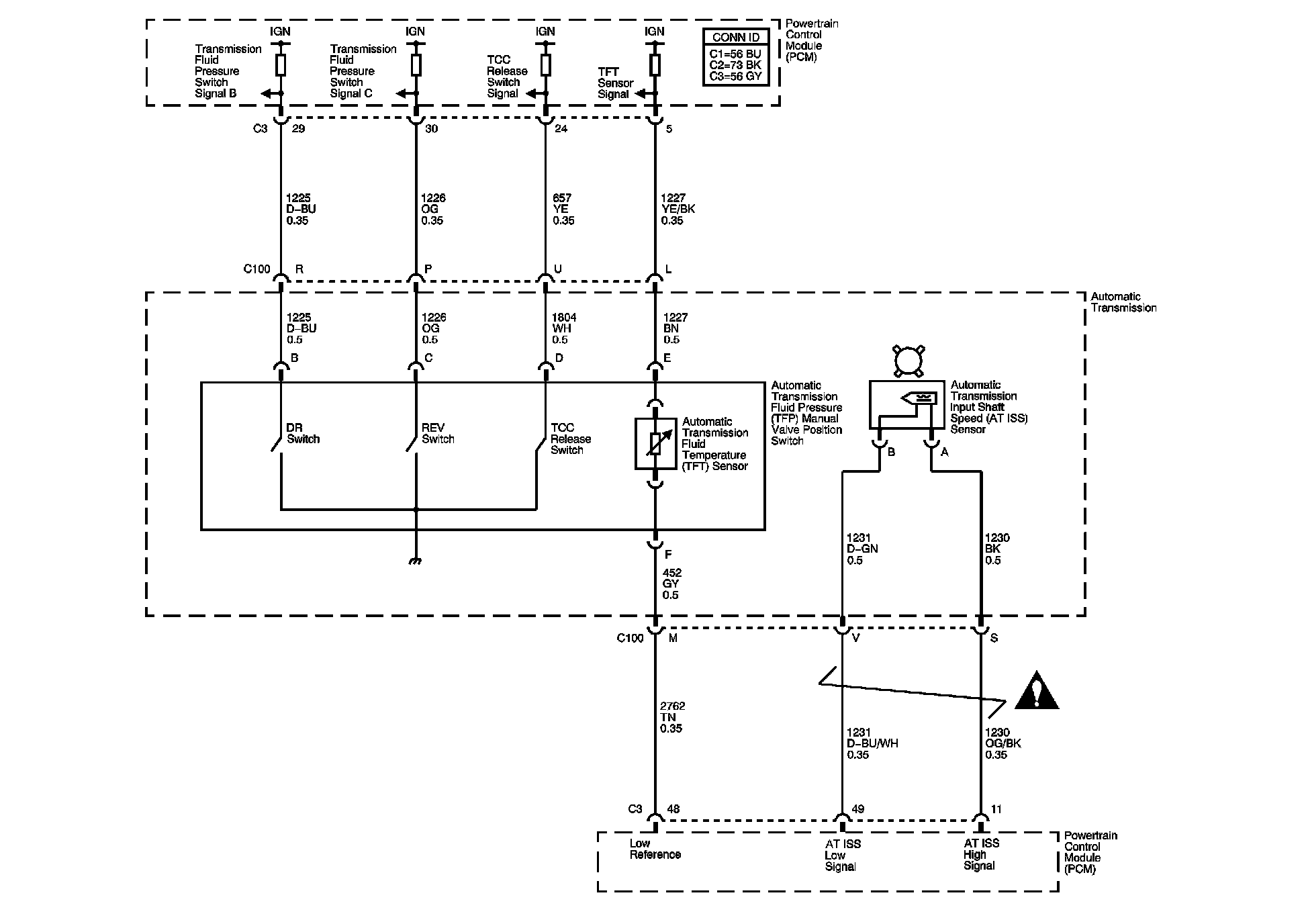 Transmission Switches, TFT and A/T ISS Sensor Diagram: