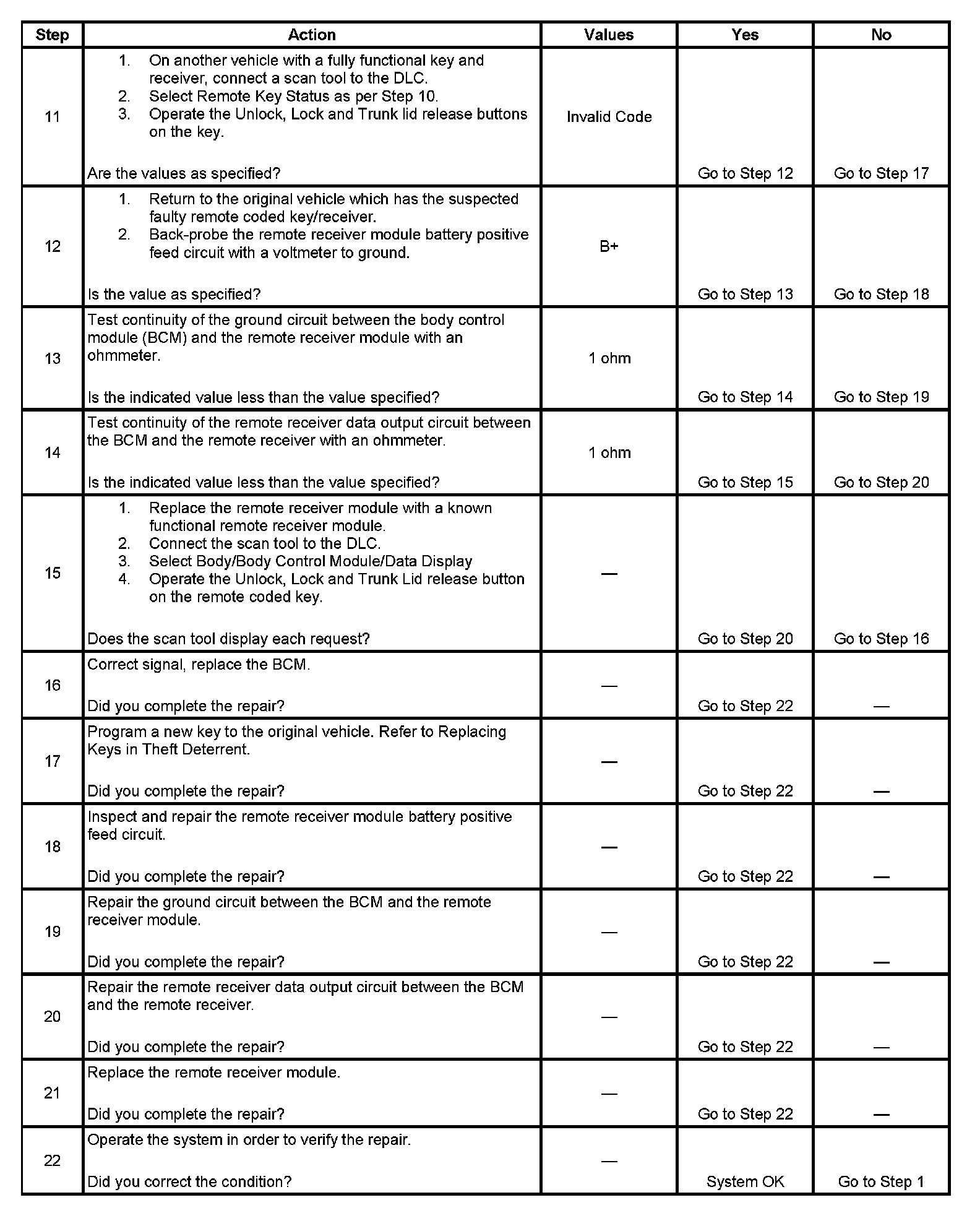 Keyless Entry System Inoperative