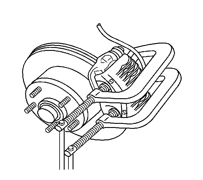 Rotate the caliper assembly up and support the caliper with heavy mechanic's wire, or equivalent. Verify there is no tension on the brake hose.