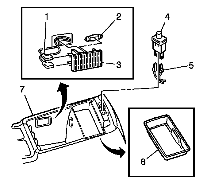 3. Install the compartment lamp (3) to the center console (7) making sure the retaining tabs are engaged.
