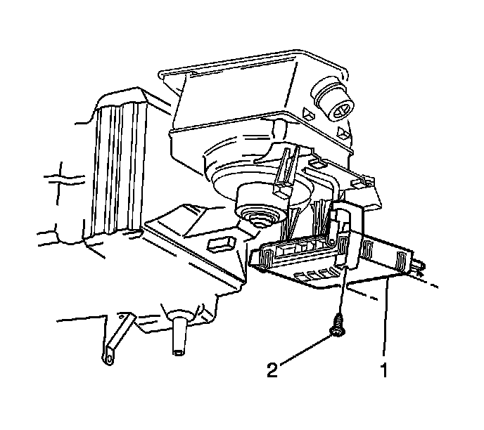 2. Remove the screw (2) attaching the BCM (1) to the bracket.