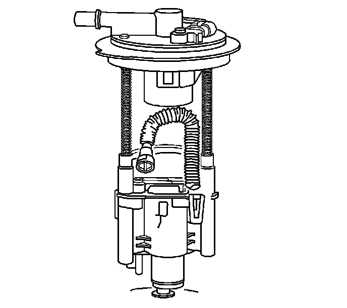 5. Partially lift the modular fuel pump and sender assembly away from the fuel tank, taking care not to damage the fuel level sender assembly.