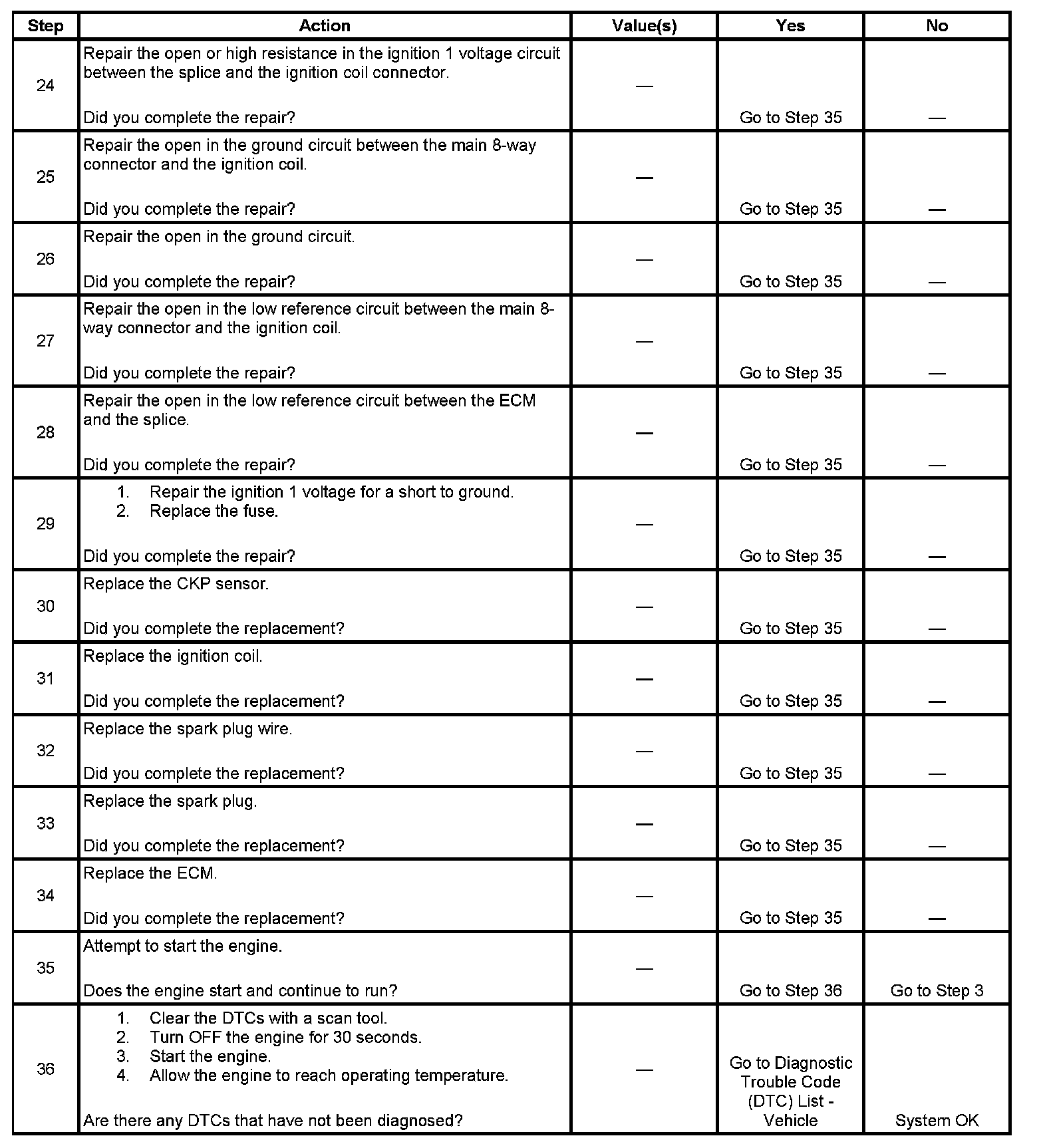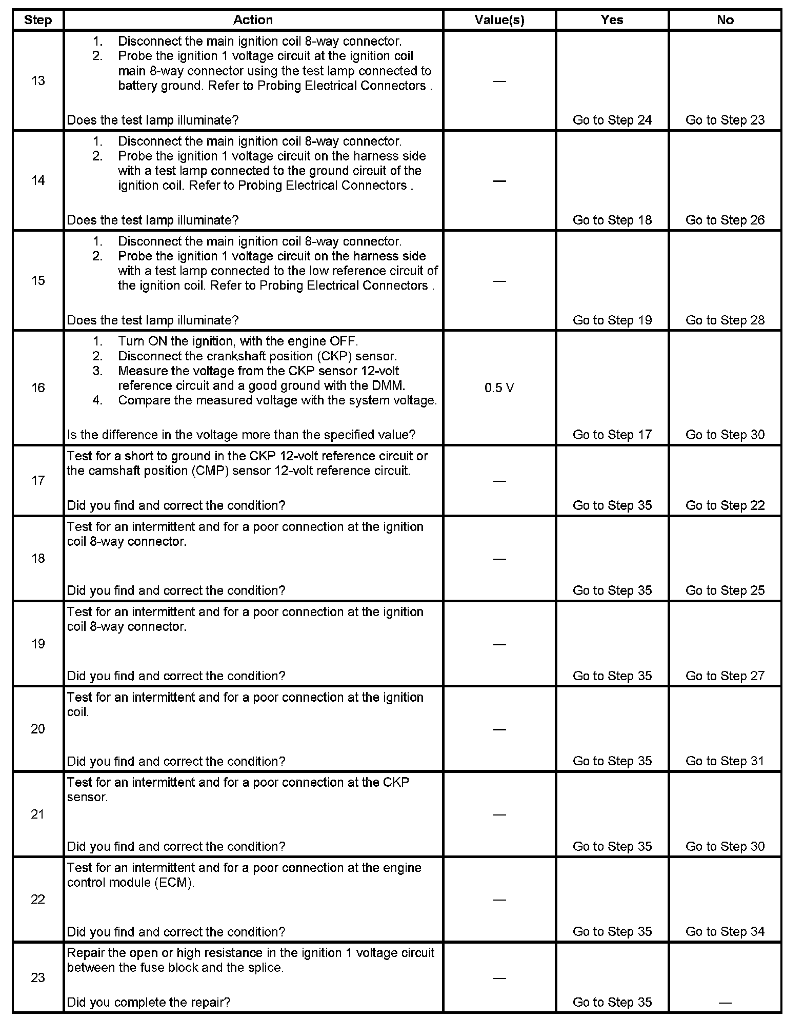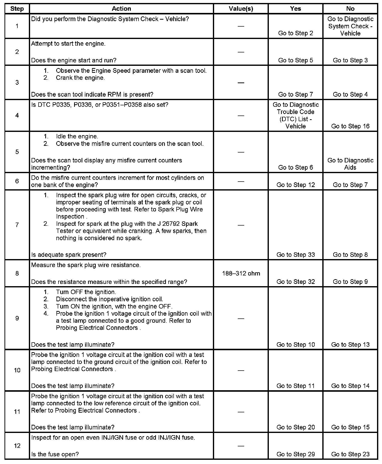 12. A good indication that the fuse is open is all off the misfire current counters are incrementing on one side of the engine. Inspect the ignition positive voltage circuit for a grounded circuit. If the fuse is open and the ignition coil circuits are OK, inspect the injector circuits for being grounded.