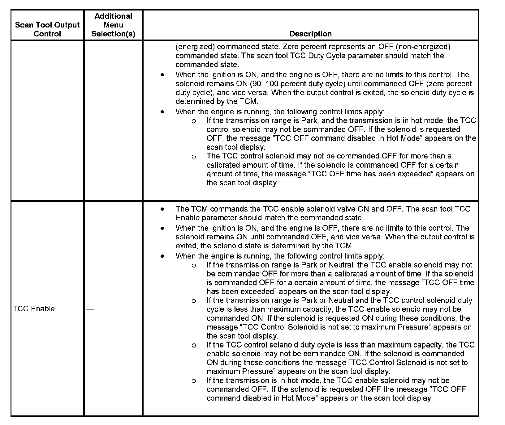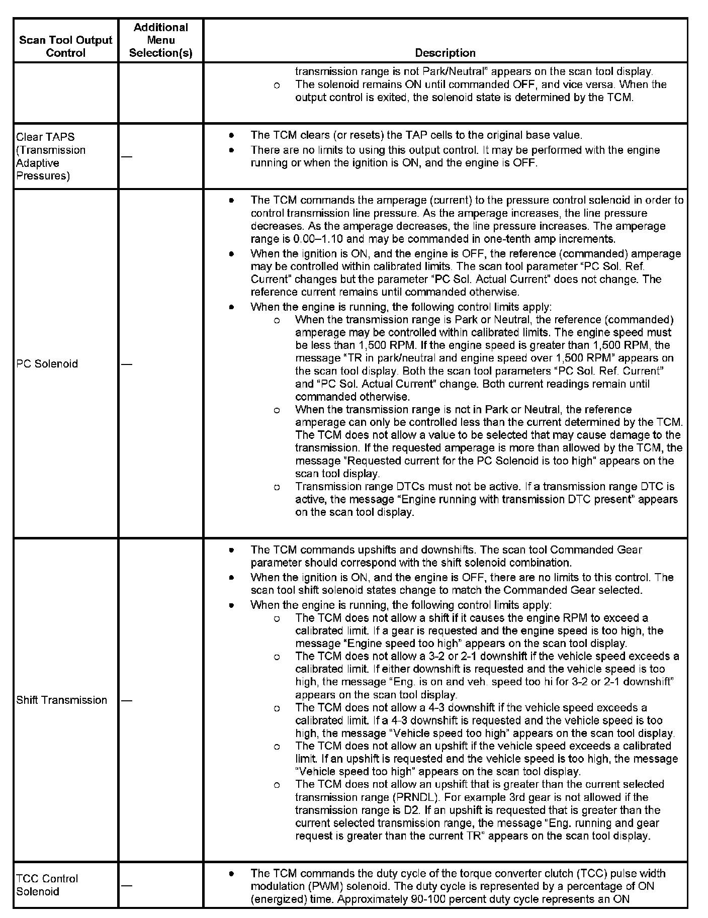 Scan Tool Output Controls