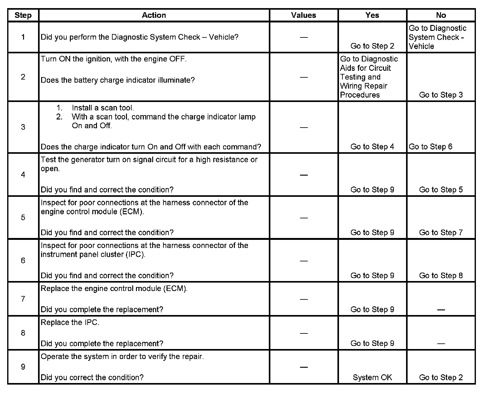 Charge Indicator Inoperative