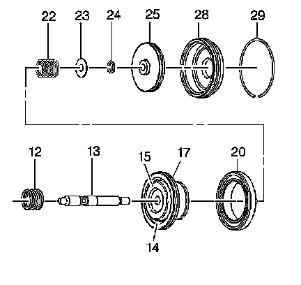 1. Inspect the 4th apply piston (25), the 2-4 servo cover (28), the 2nd apply piston (17), and the servo piston inner housing (20) for the following conditions: