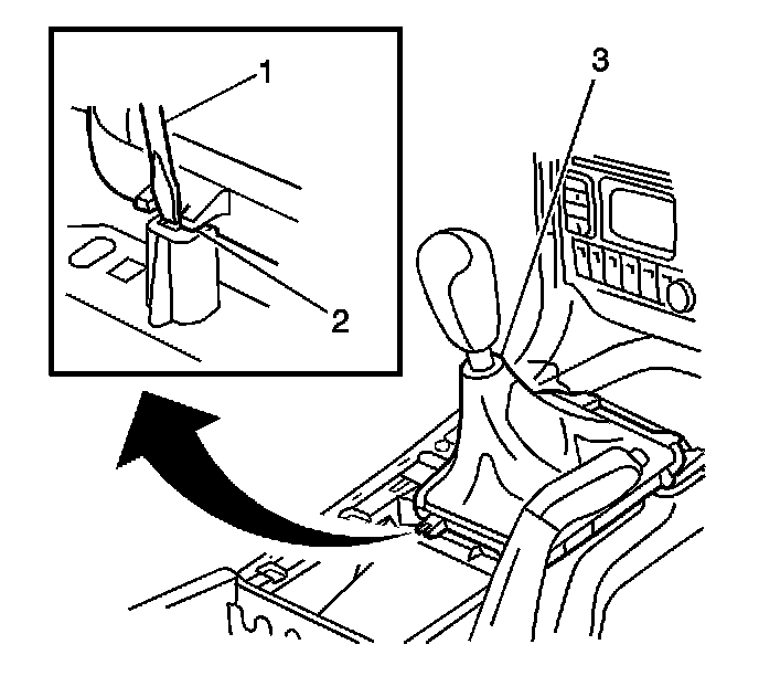2. Using a screwdriver, remove the shift control lever boot (2).