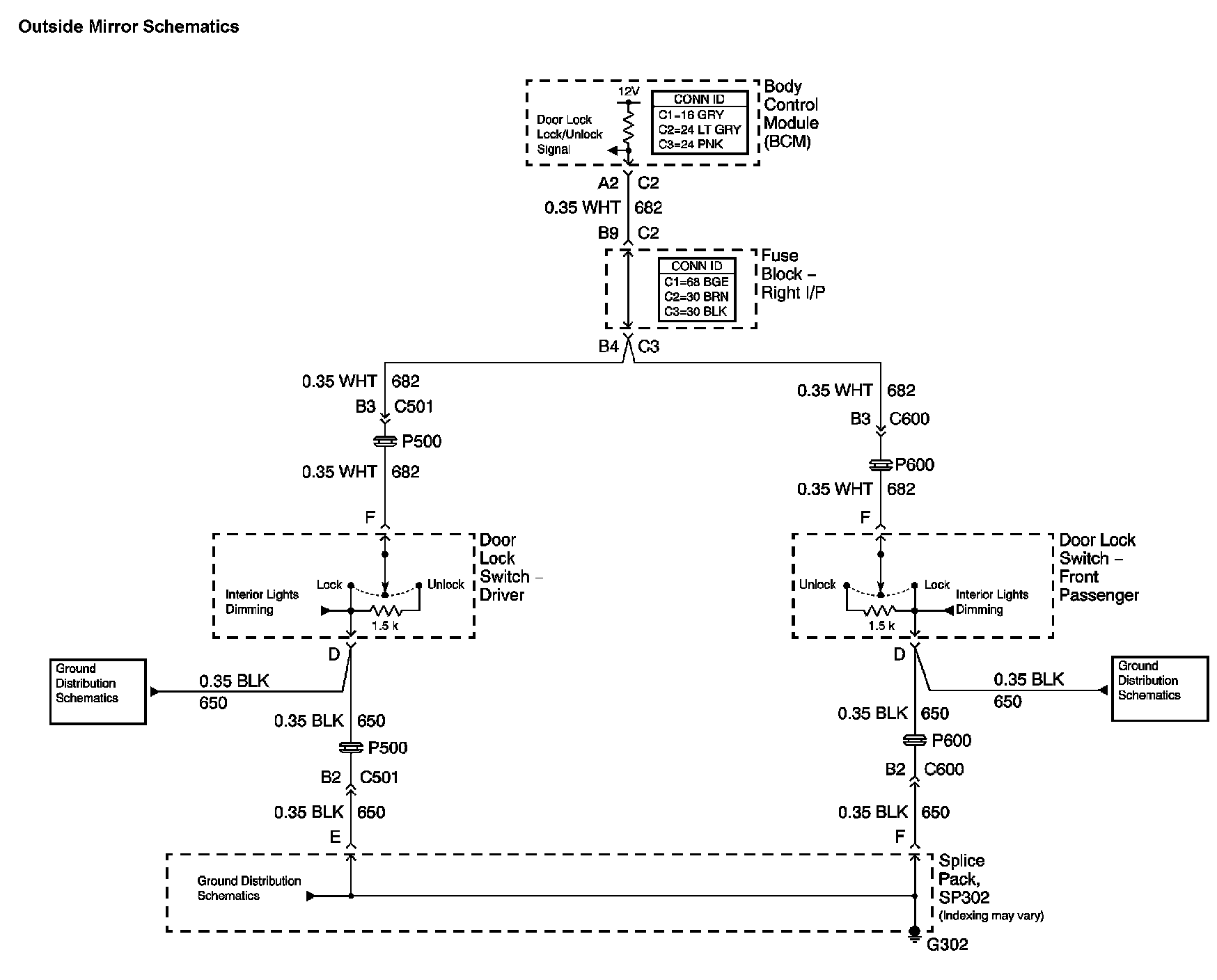 The locations for the Connectors, Grounds, Splices, and Grommets shown within these diagrams can be found via their numbers at Vehicle Locations.
