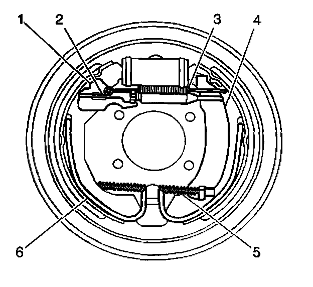 Important: Ensure that the adjuster (2) engages the brake shoes (4 and 5), the park brake actuator (3), and the adjuster actuator (1) properly.