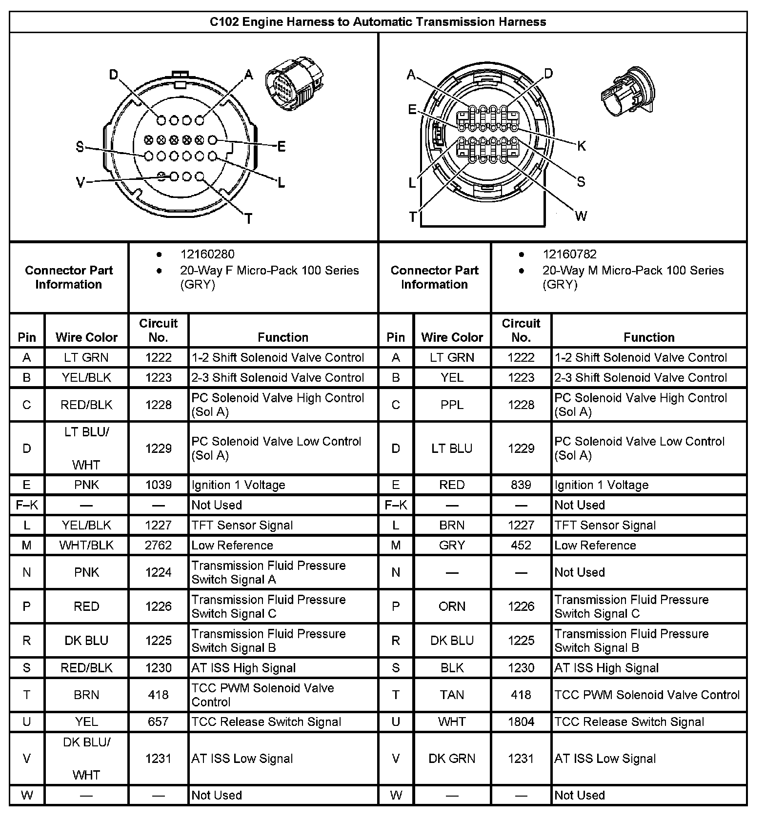 C102 Engine Harness To Automatic Transmission Harness: