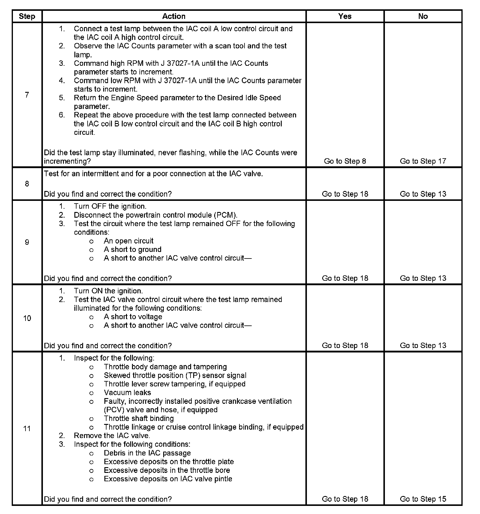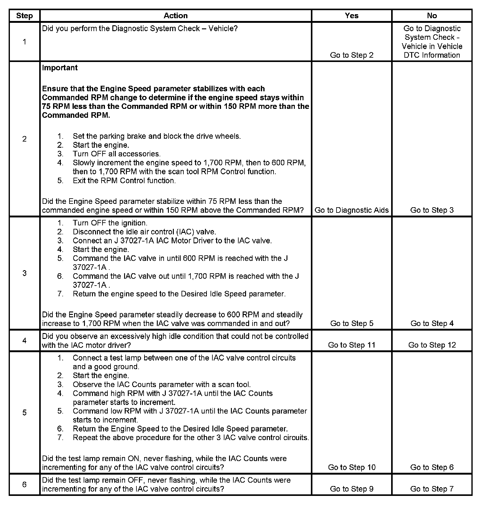 5. This test will determine the ability of the PCM and IAC valve control circuits to control the IAC valve.