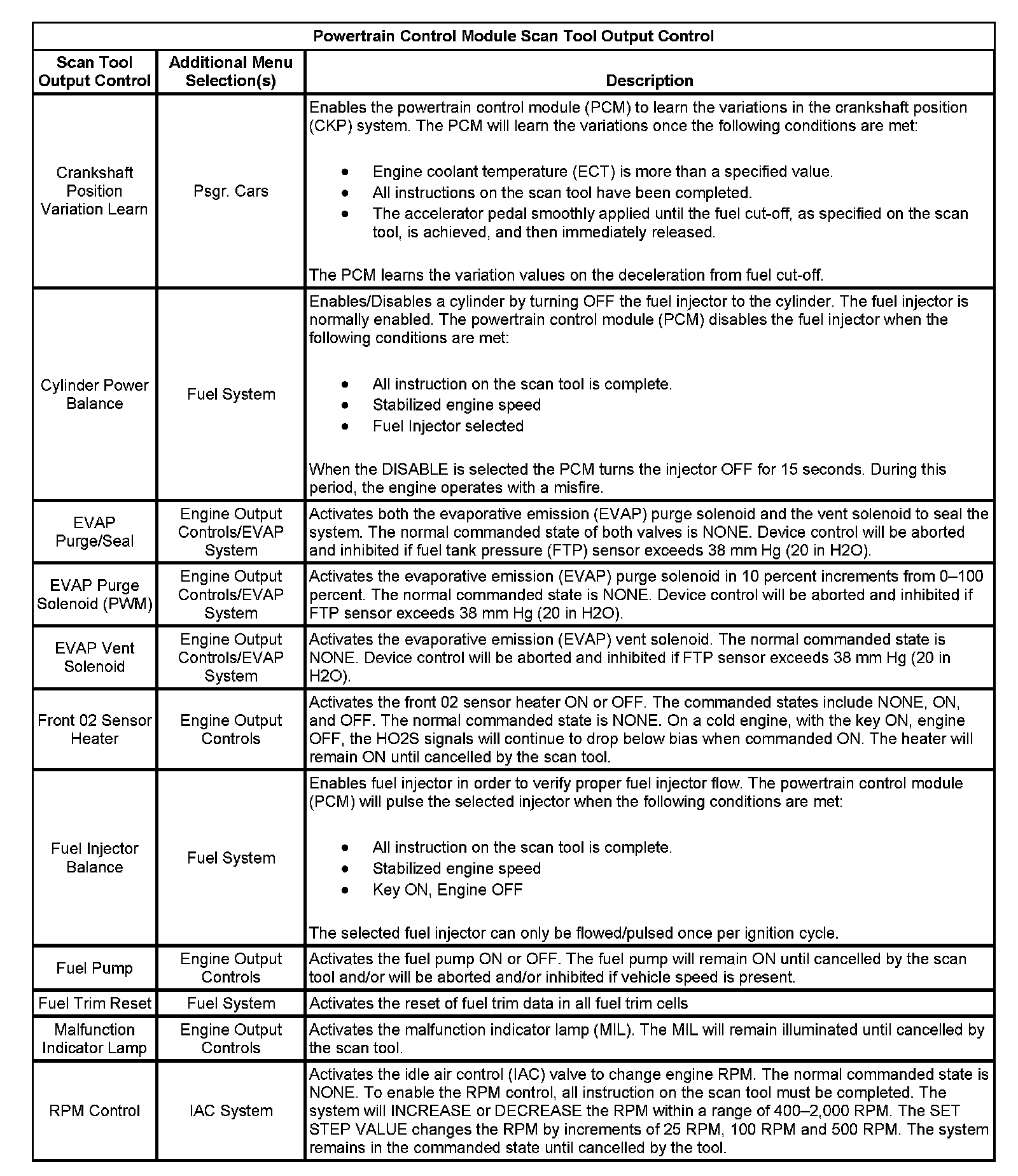 Powertrain Control Module Scan Tool Output Control Part 1: