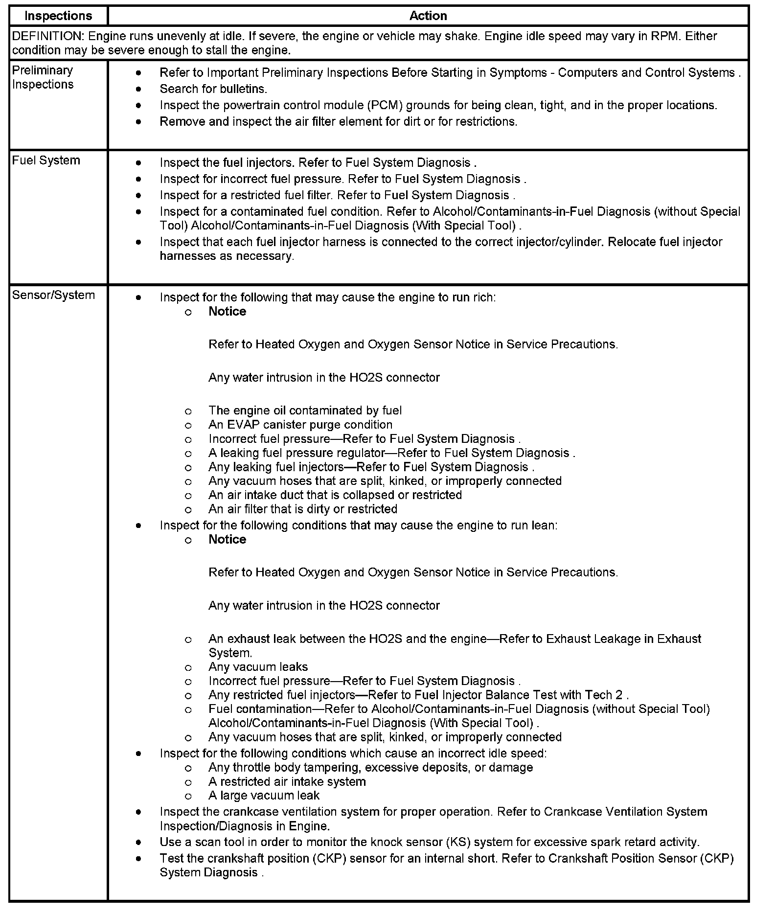 Rough, Unstable, or Incorrect Idle and Stalling