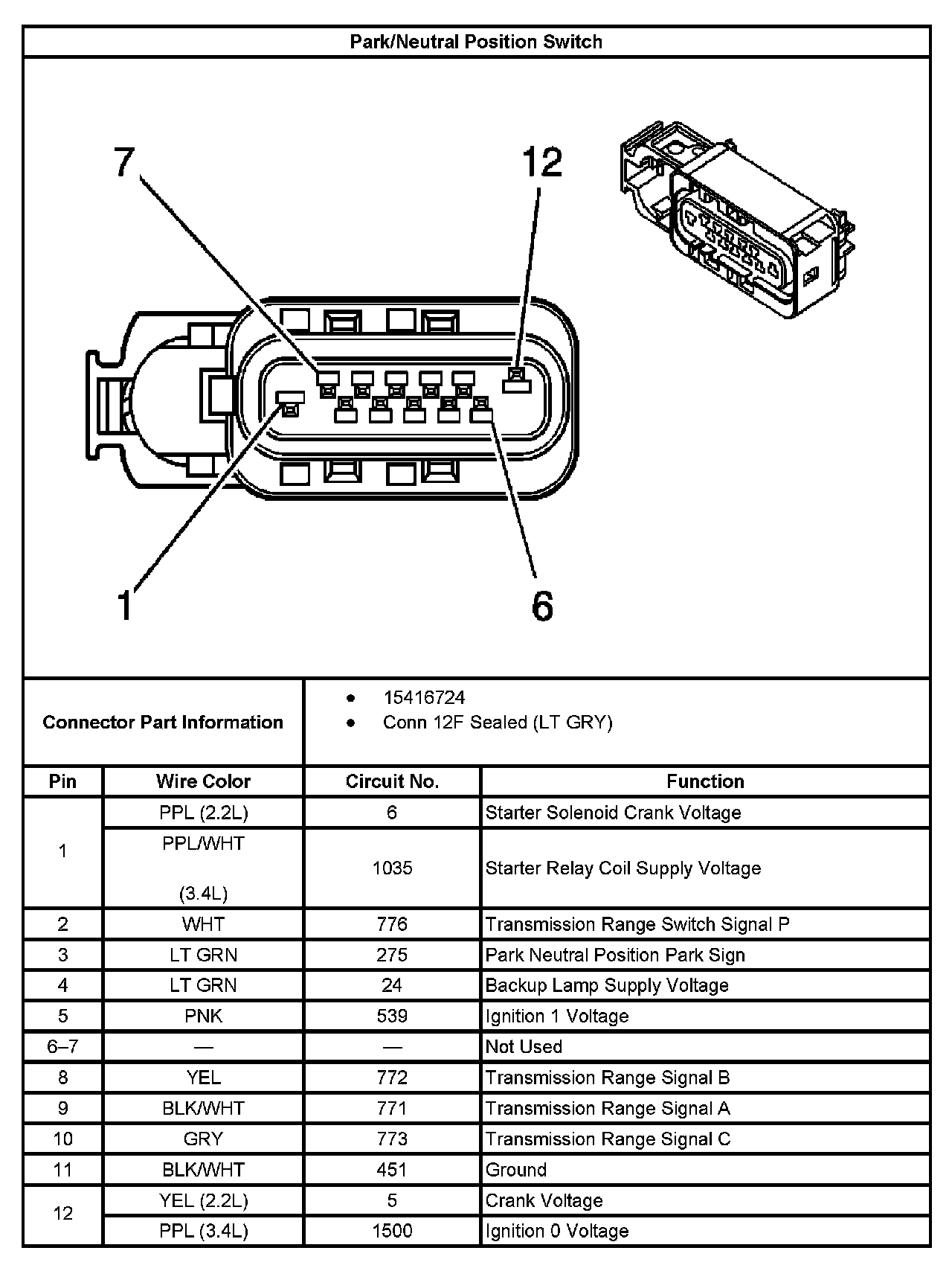 Transmission Position Sensor/Switch: Diagrams