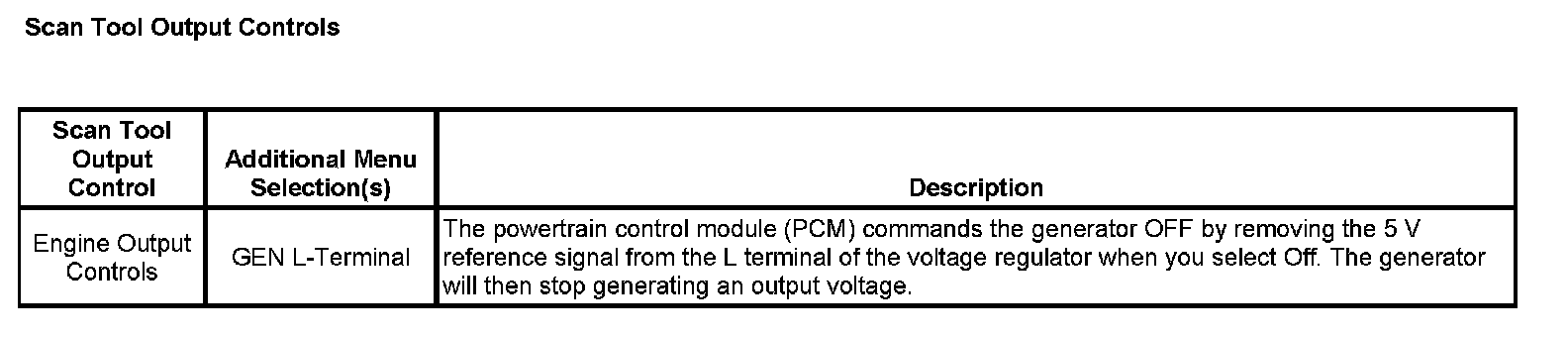 Scan Tool Output Controls: