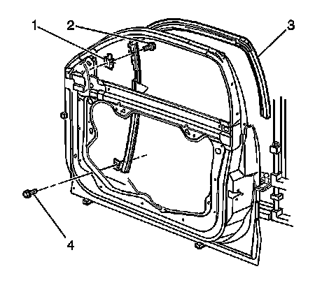 7. Remove the window run channel weather-strip (3) from the front door window.