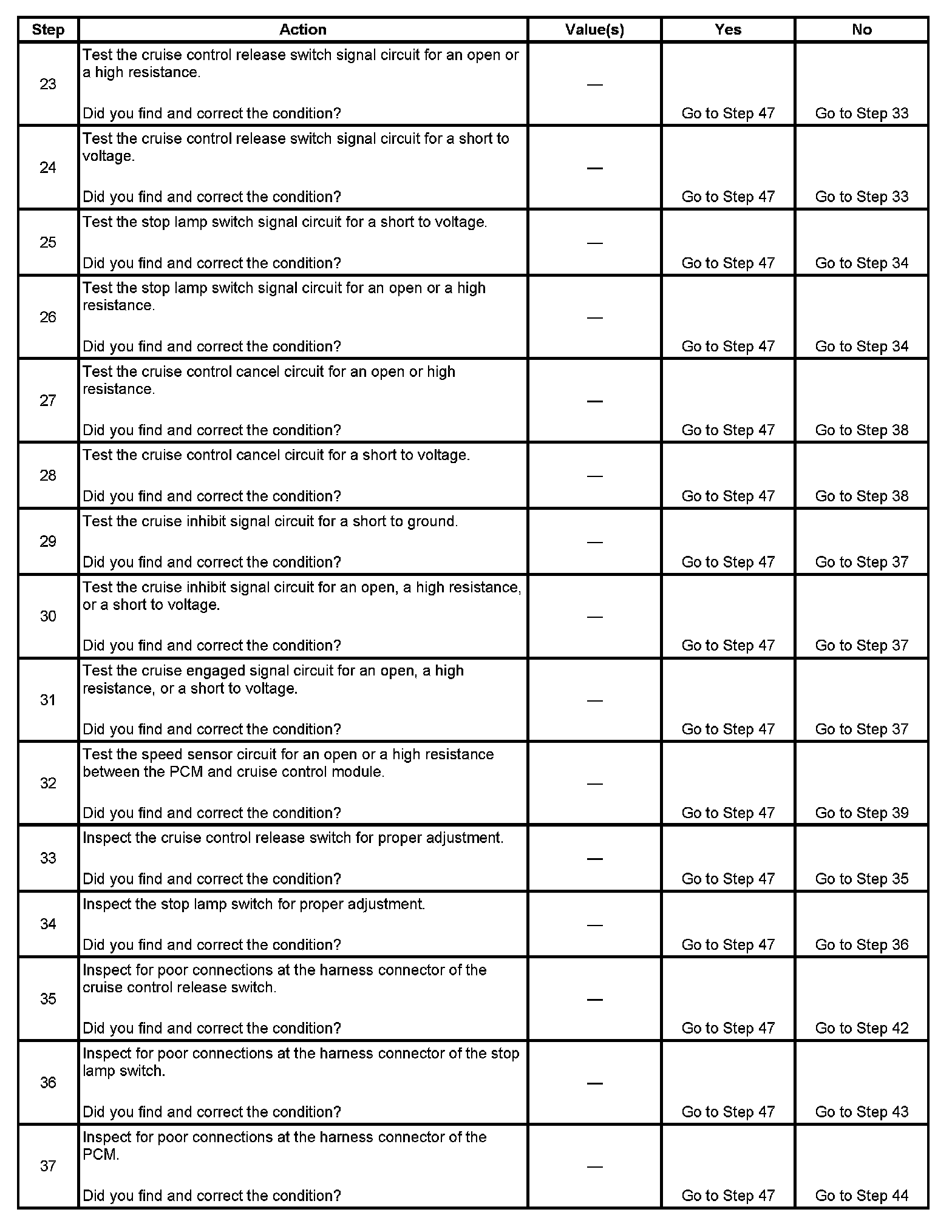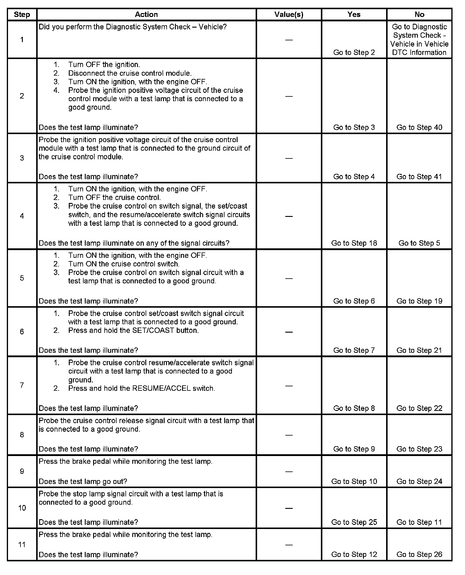 - When testing vehicles equipped with steering wheel controls, the steering wheel must be rotated to each stop position while testing the cruise control switch signal circuits. This will ensure the integrity of the SIR coil.